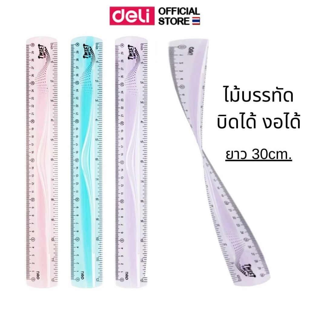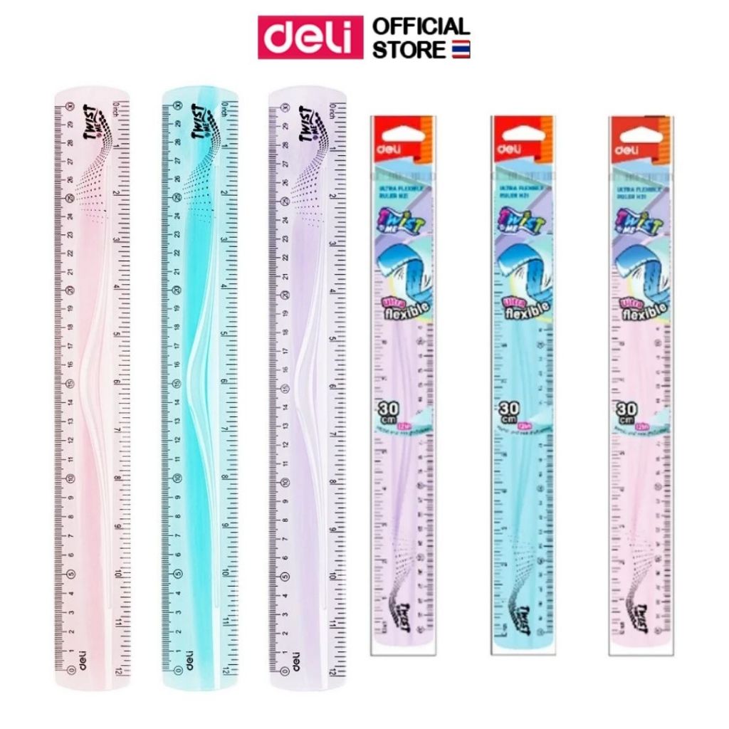 ไม้บรรทัดงอได้ Deli ไม้บรรทัด 30cm. งอได้ ไม่หัก เครื่องเขียนสำหรับนักเรียน อุปกรณ์การเรียน (คละสี 1 ชิ้น)