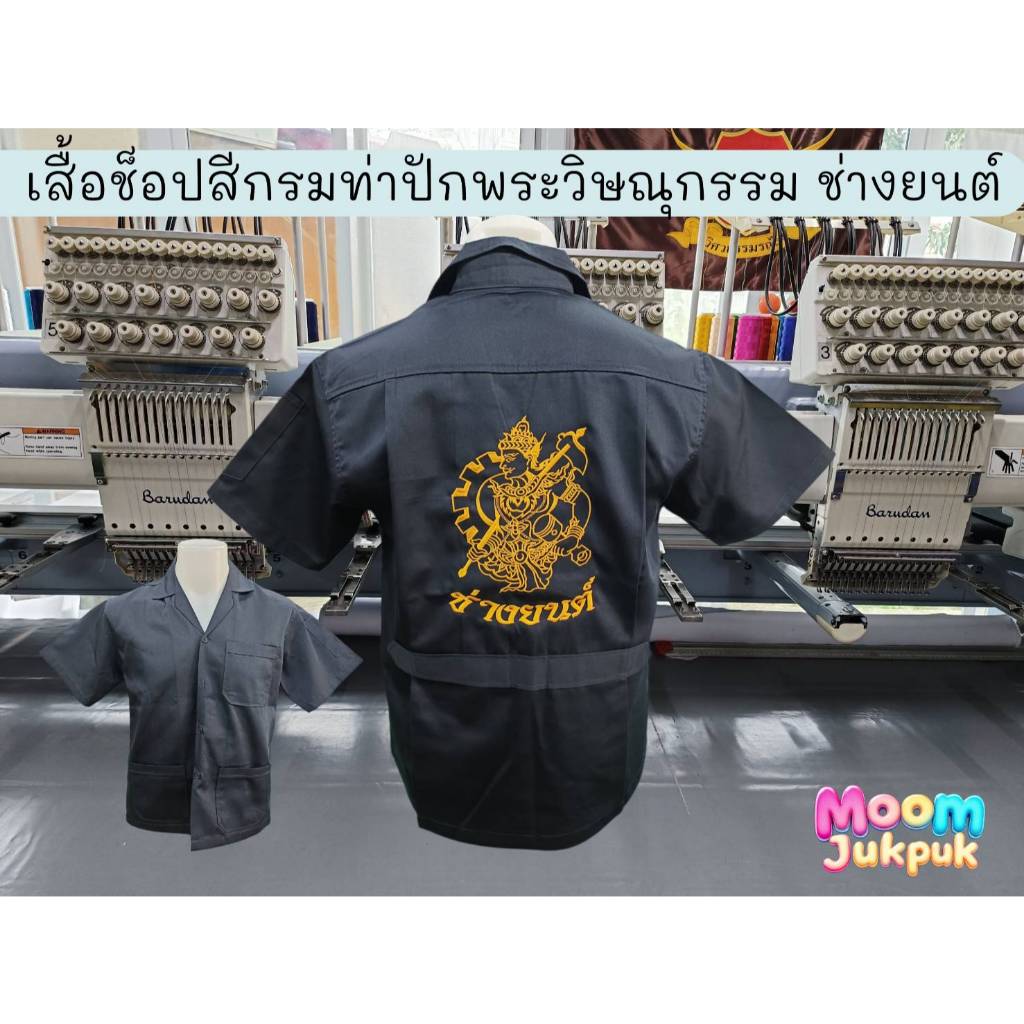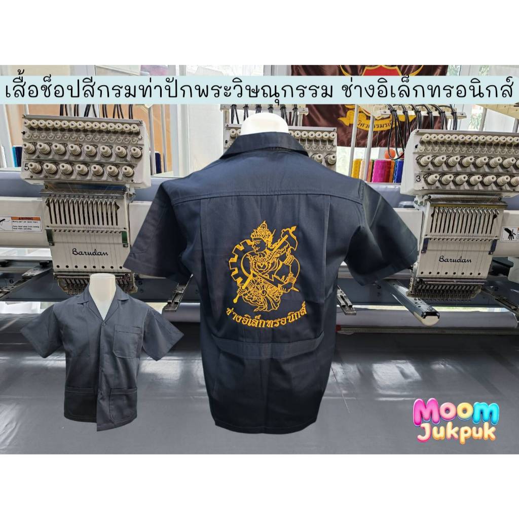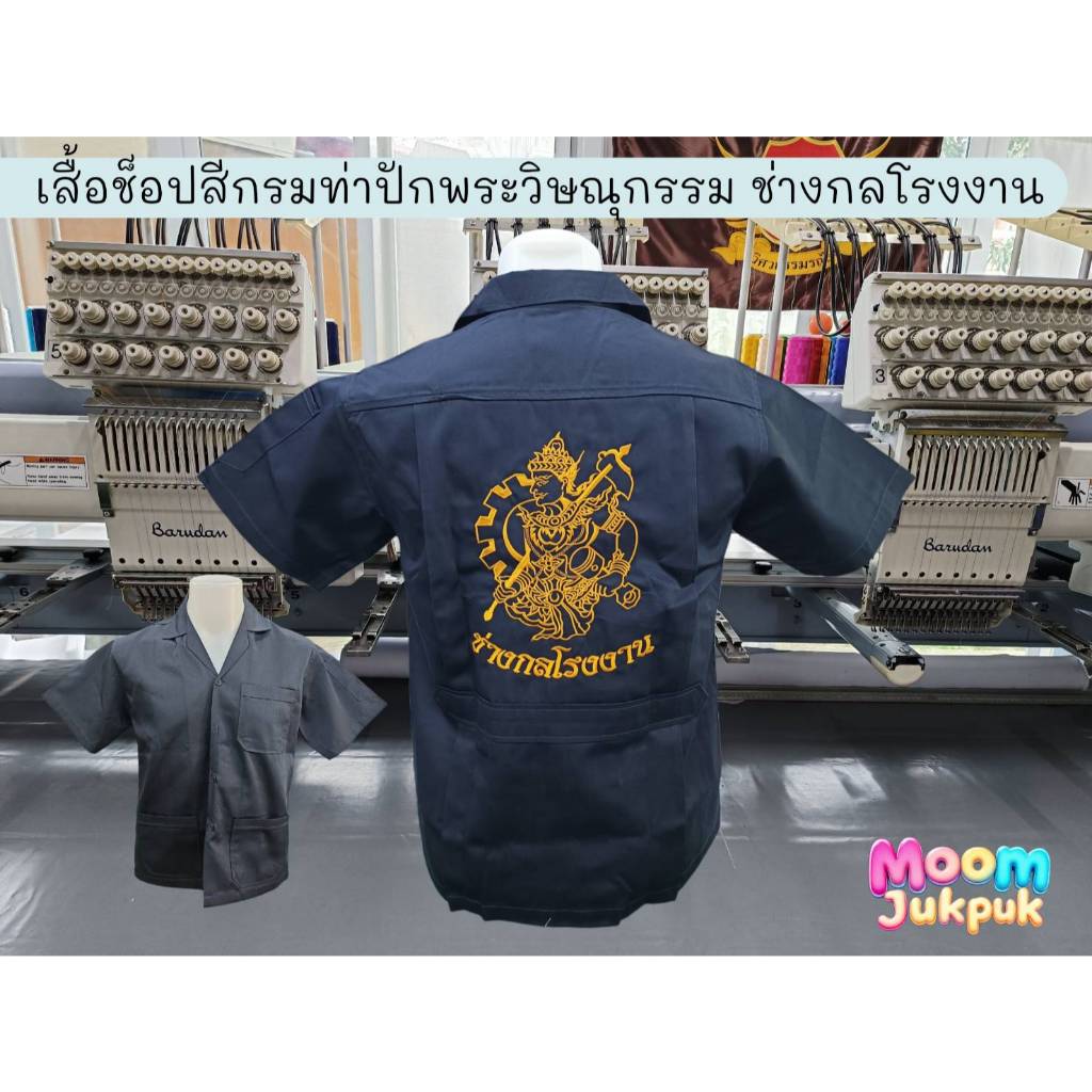 เสื้อช็อปสีกรมท่าปักหลังลายพระวิษณุกรรม (SC) หากต้องการเสื้อสีอื่นโปรดแชทแจ้งทันที