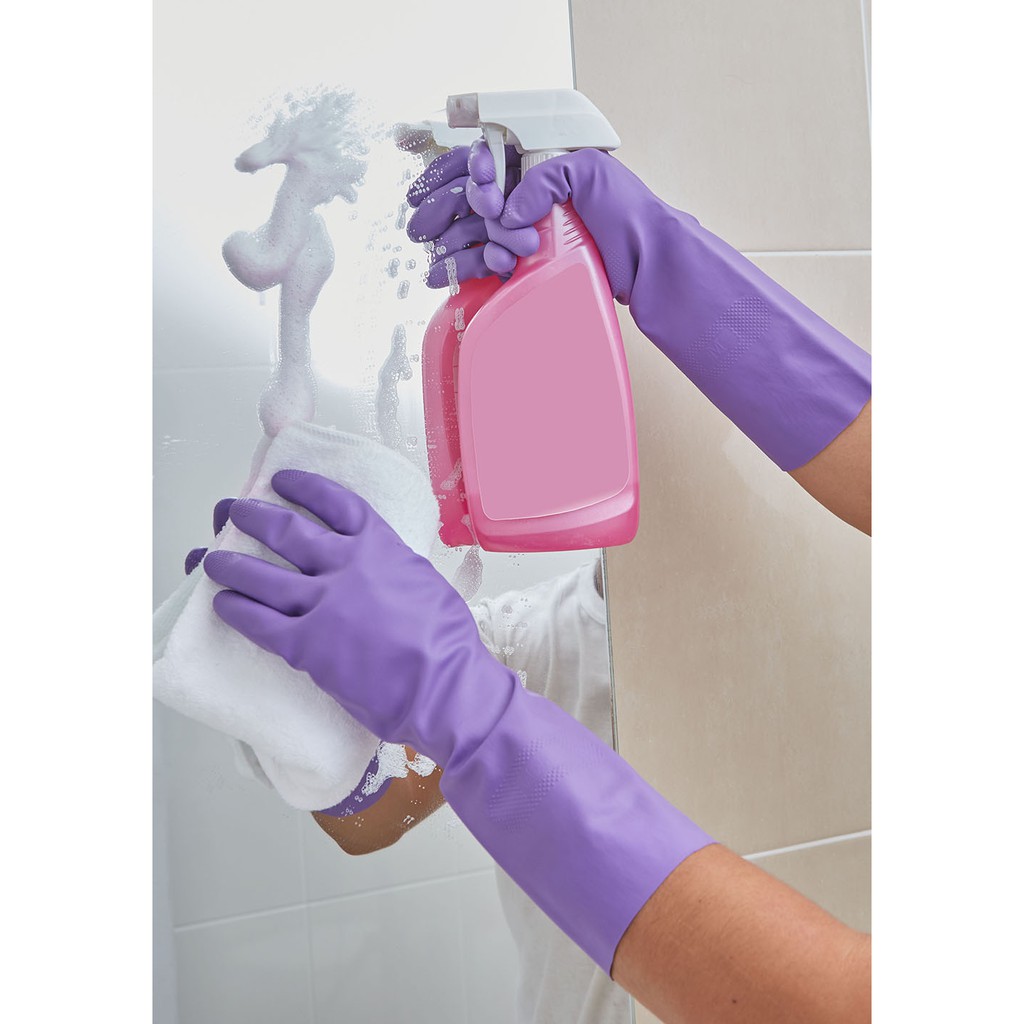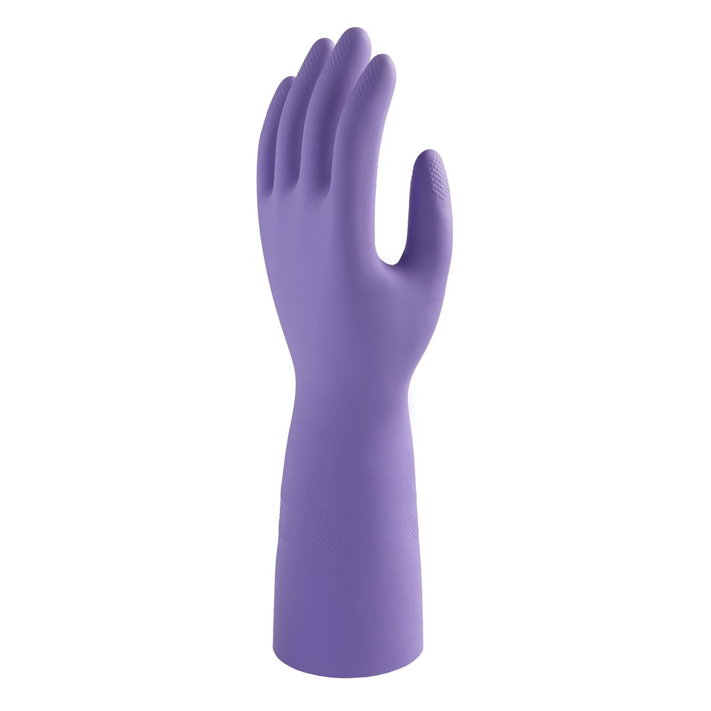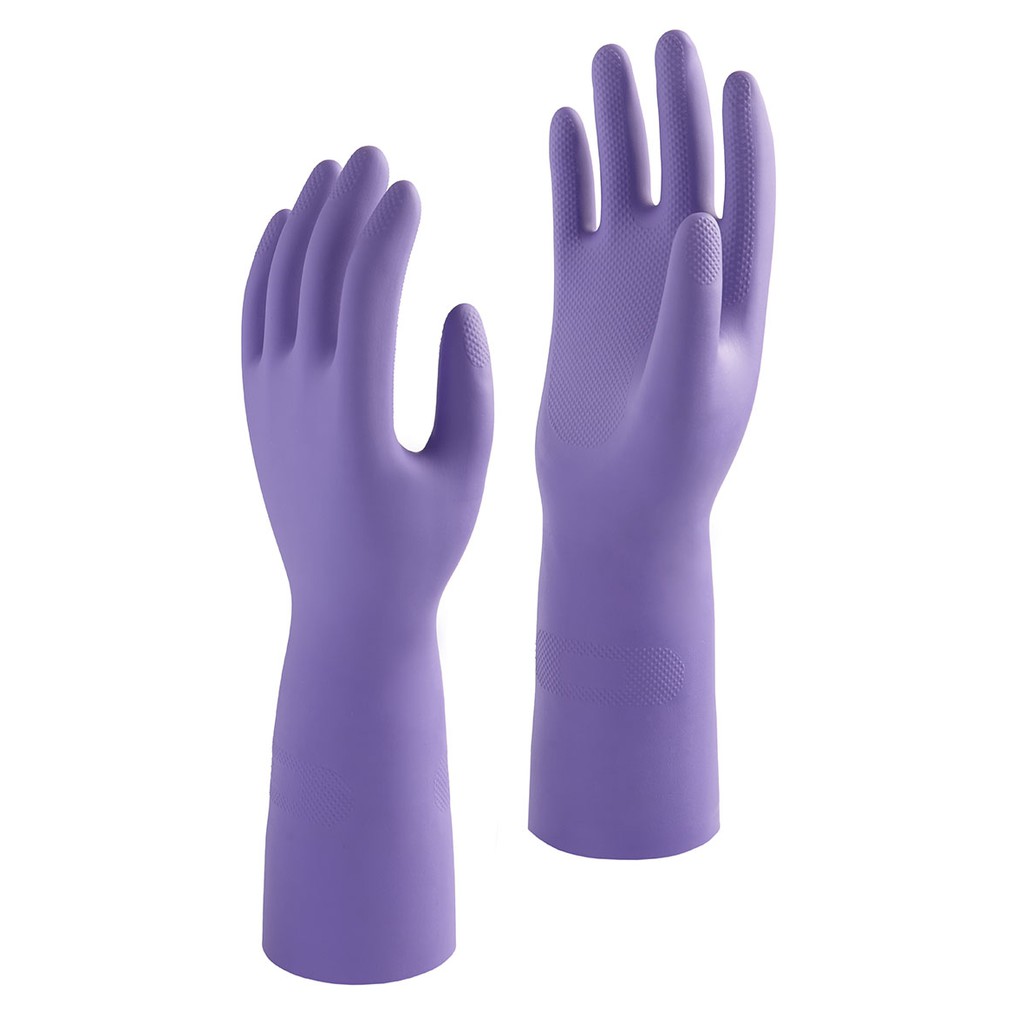 12 คู่ (1โหล) - ถุงมือยางสีม่วง "ตราซอฟท์ดราย14" ซับในกำมะหยี่ [ ลูกค้าใหม่ 1 บาท 🔥 ]
