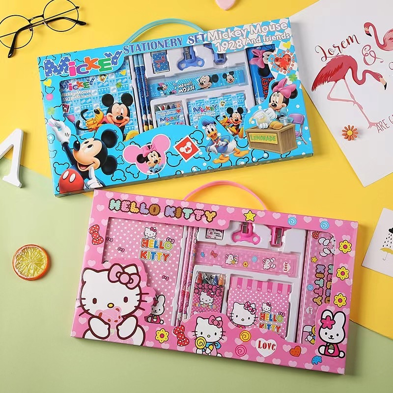 ชุดเครื่องเขียนและอุปกรณ์การเรียนลายการ์ตูนน่ารักเป็นของขวัญเด็กได้
