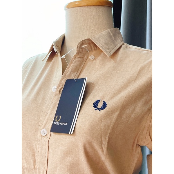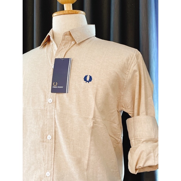 fredperryสีครีมงานปักfredperryสีกรมกระดุมขาวแขนยาว
