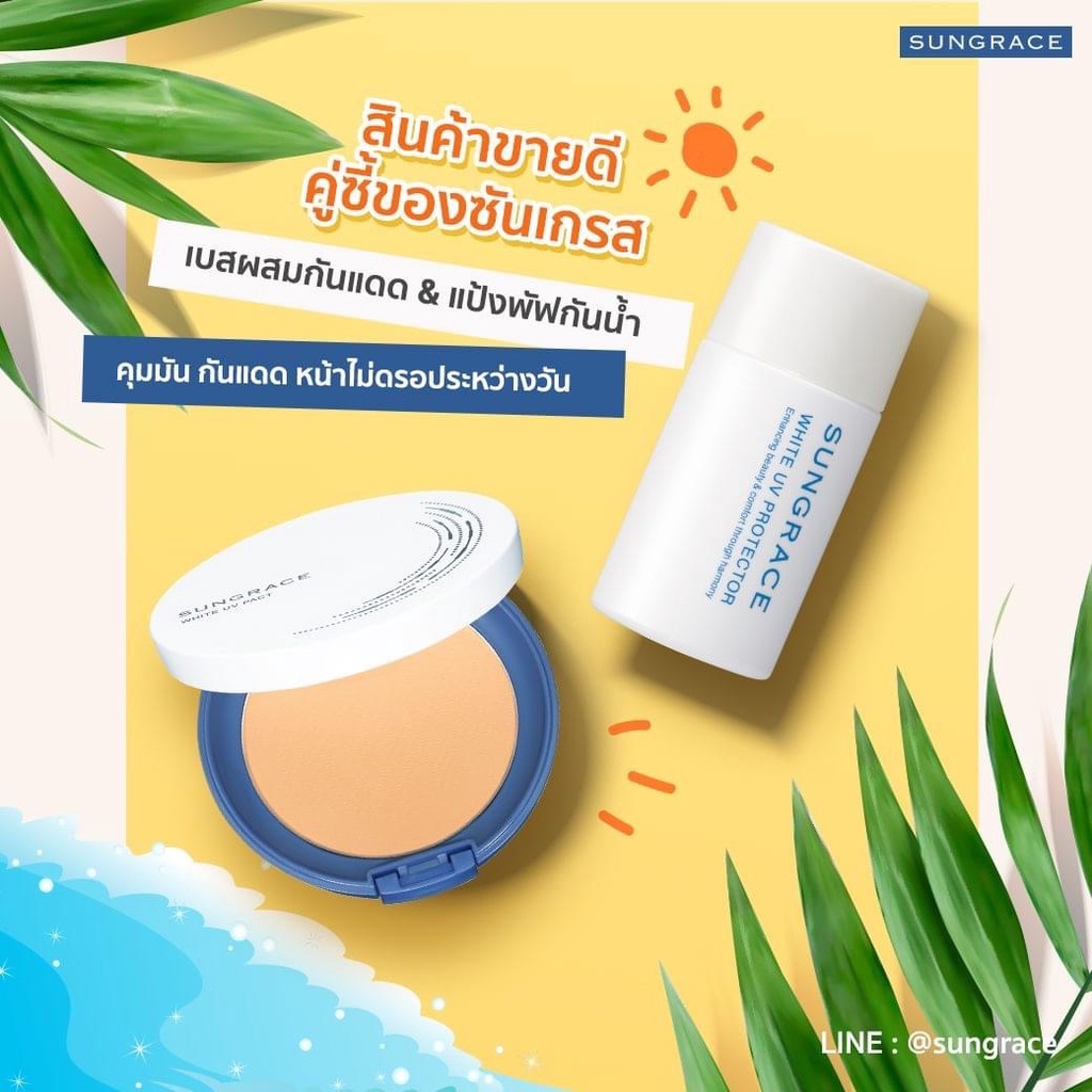 (Set สุดคุ้ม) ซันเกรส Sungrace แป้งพัฟคู่เมคอัพเบส สูตรน้ำนมเนื้อบางเบา แป้งพัฟกันน้ำ ครีมกันแดด แป้งพัฟซันเกรส