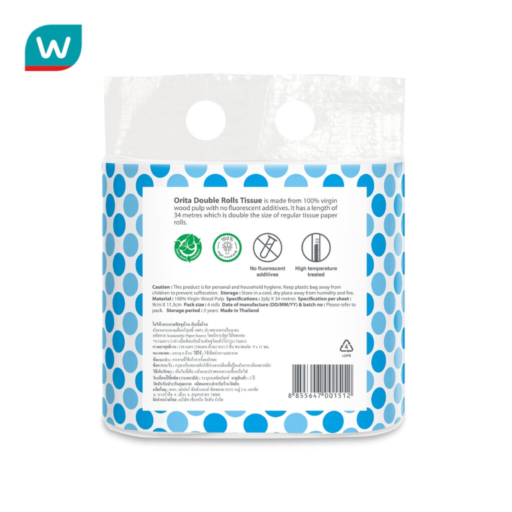 Orita โอริต้าทิชชู่ม้วน 34เมตร แพ็ค 4ม้วน