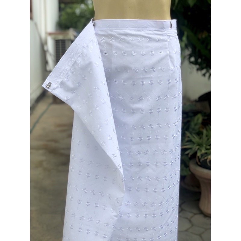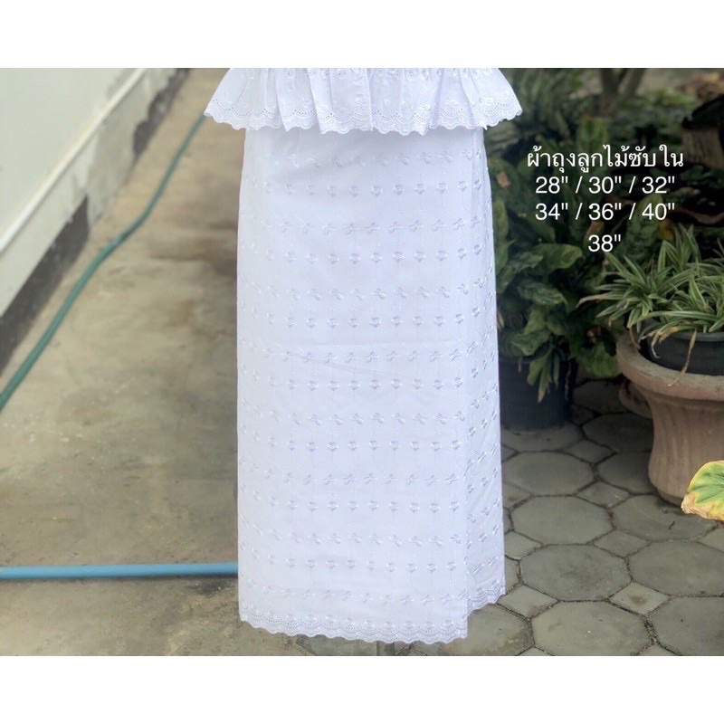 ชุดขาวลูกไม้คอปาดระบายซิปข้าง ชุดขาวลุกไม้ปฏิบัติธรรม ไซส์ 34“-48“