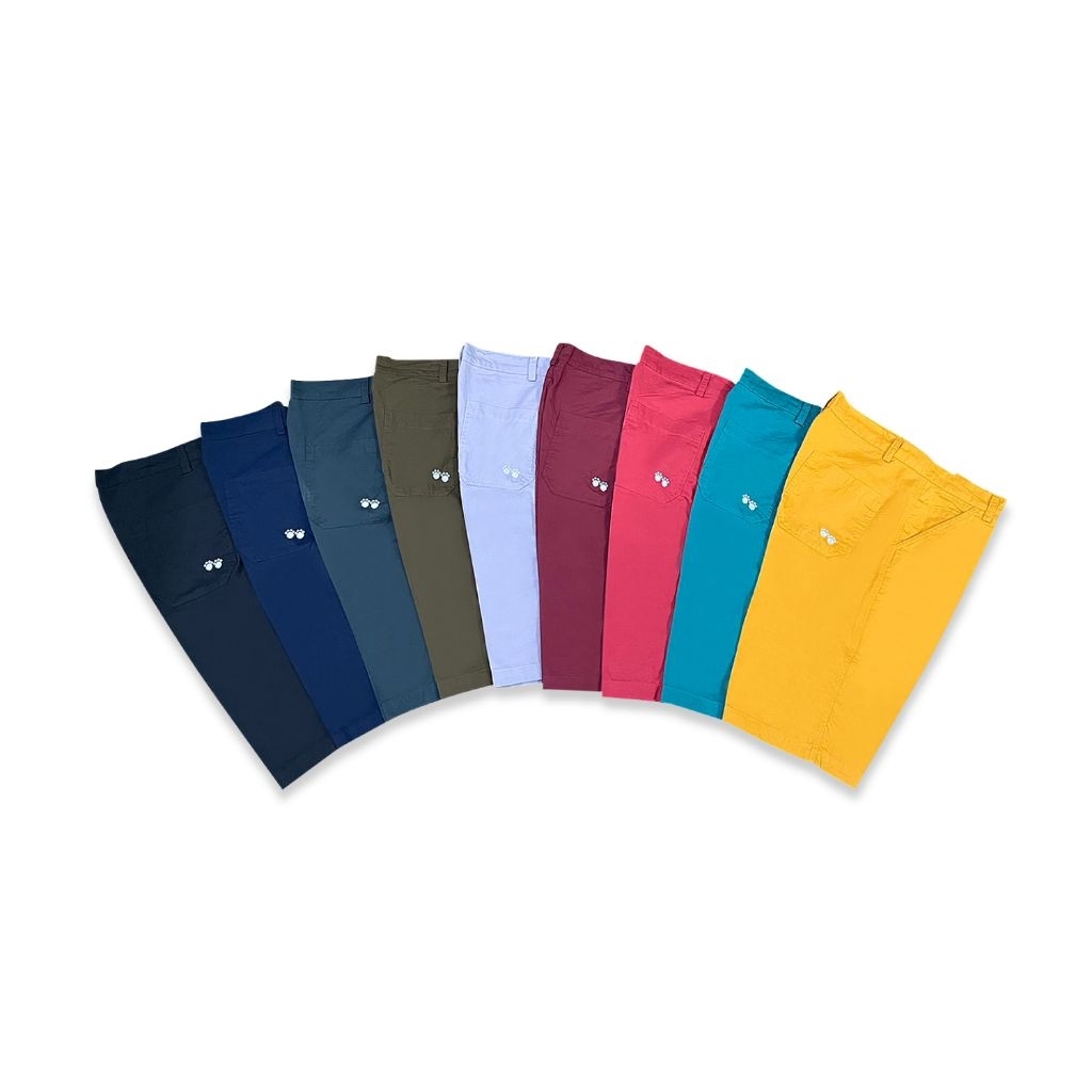 Horse ten กางเกงขาสั้น 3 ส่วน เอวกระดุมทรงตรง กระเป๋าหลังแปะ #6140