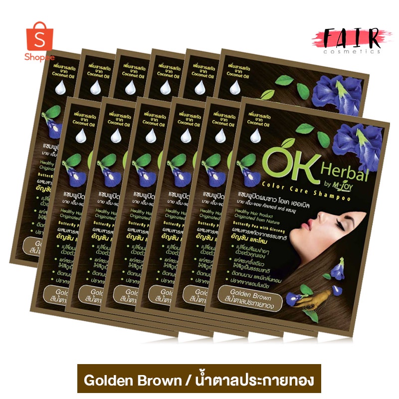 [1 กล่อง/12 ซอง] แชมพูปิดผมขาว OK Herbal โอเค เฮอเบิล [30 มล.] สีน้ำตาลประกายทอง