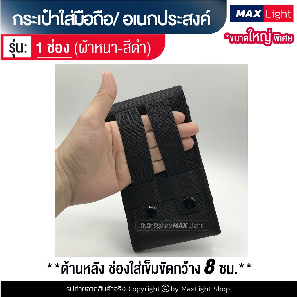 MaxLight (1 ช่อง-ใหญ่พิเศษ 19x10 ซม.-ผ้าหนา) กระเป๋าใส่มือถือ ซองใส่โทรศัพท์ คาดเอว มีรูร้อยเข็มขัด 8 ซม.ขนาดใหญ่