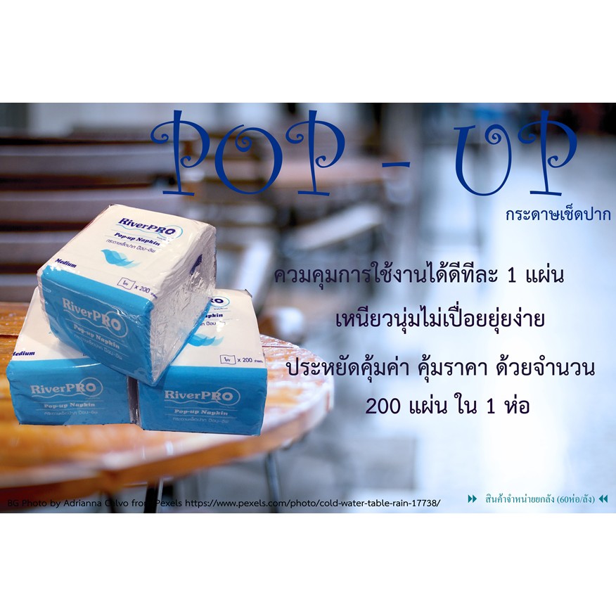 [กรุณากดสั่งซื้อครั้งละไม่เกิน 2 ลัง] กระดาษเช็ดปาก ป๊อปอัพ ริเวอร์โปร์ หนา 1 ชั้น 200 แผ่น/ห่อ