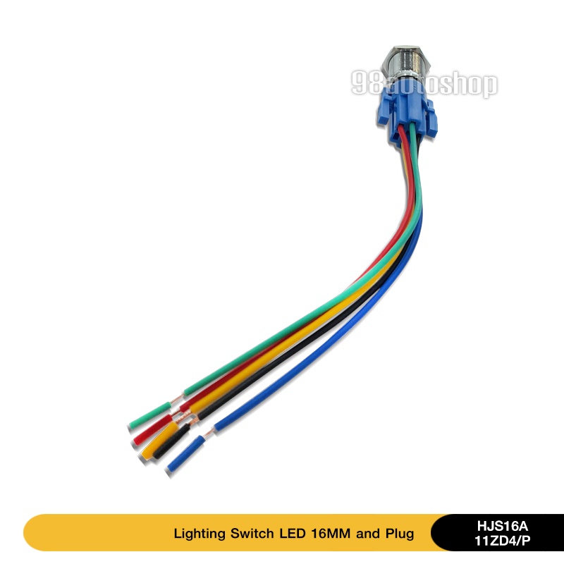 98autoshop16มิล สวิทซ์กดเปิดกดปิดพร้อมโลโกไฟ พร้อมปลั๊กต่อด้วย ขนาด16มิล 12V 5ขา 1ชิ้น โลหะอย่างดี ไฟ12V