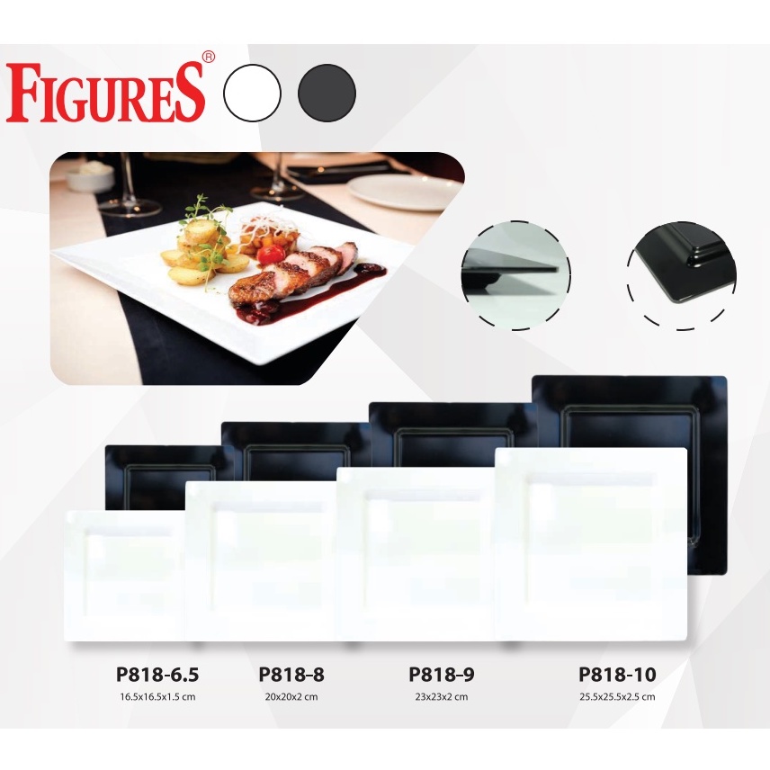 Figure จานสี่เหลี่ยม จานตื้นทรงสี่เหลี่ยมจัตุรัส รุ่นหนา ขนาด 6.5-10 นิ้ว รุ่น P818