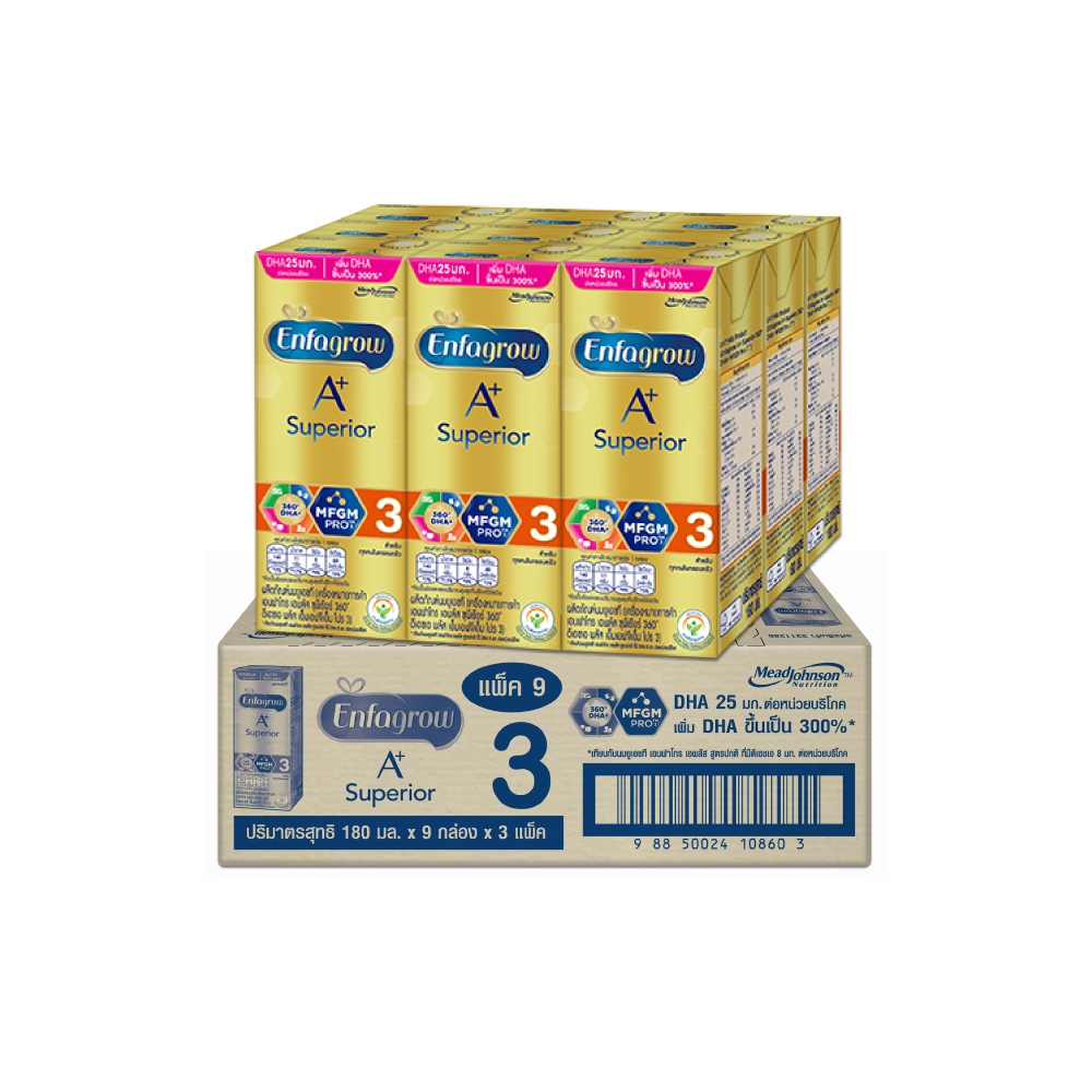 นมกล่อง เอนฟาโกร ยูเอชที ซุพีเรียร์ สูตร3 (27 กล่อง) Enfagrow UHT Superior Stage3 (27 boxes)