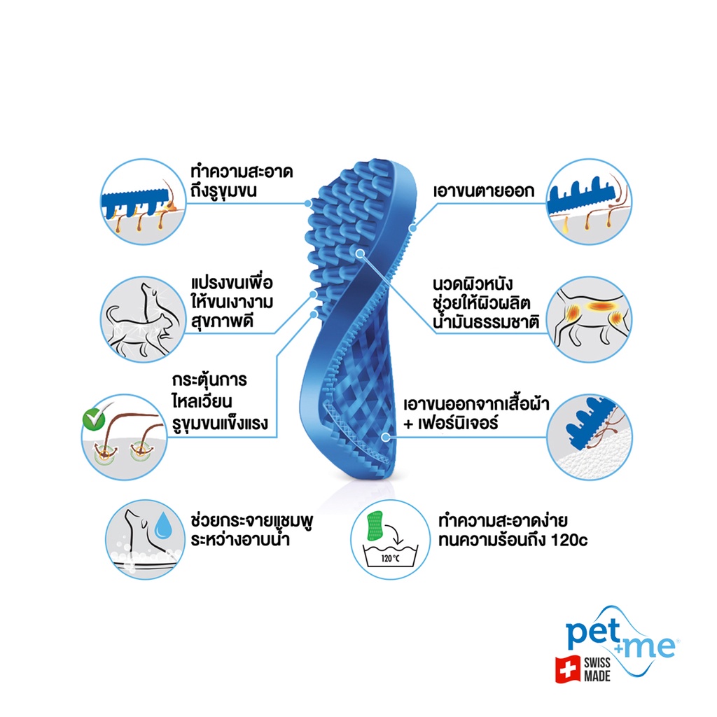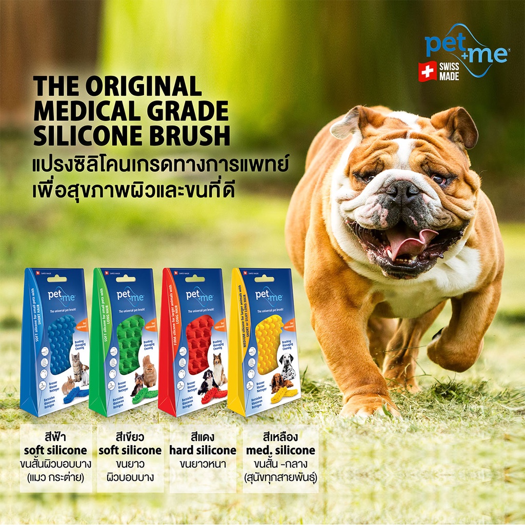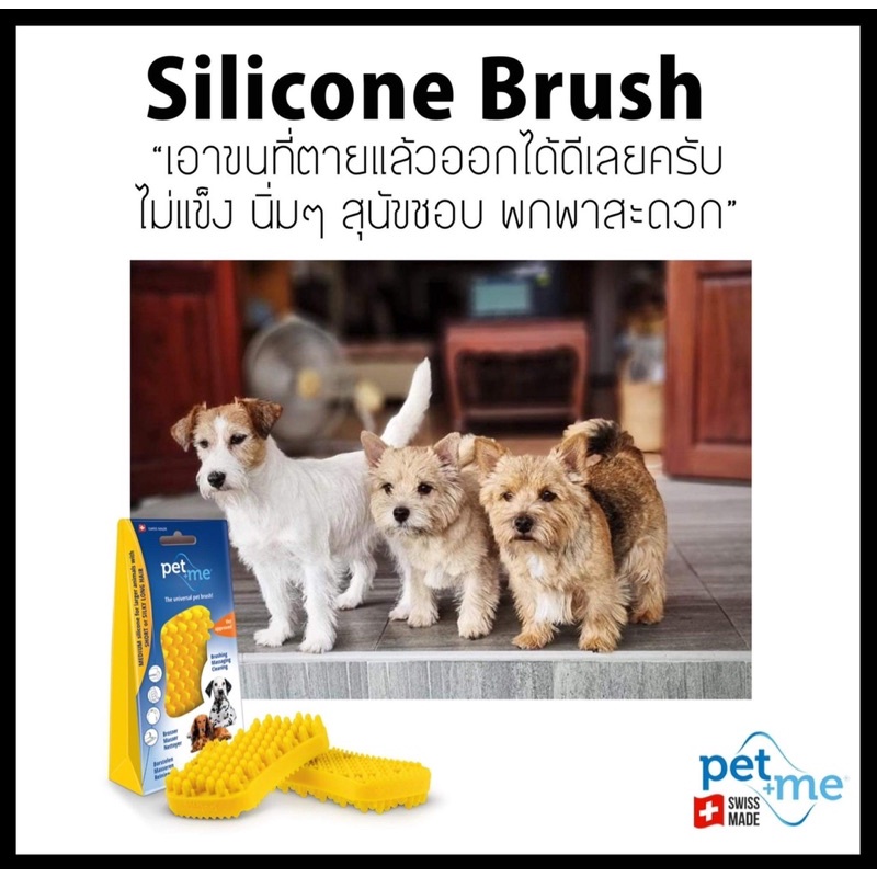 Pet+Me Yellow Silicone Brush for Dogs Short-Medium Hair แปรงซิลิโคนสำหรับหมาขนสั้น-ปานกลาง สีเหลือง