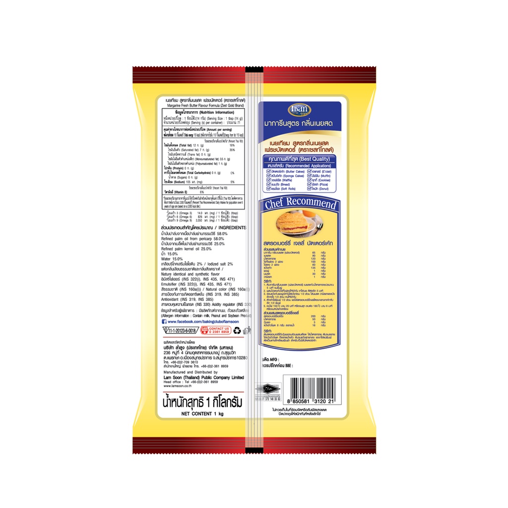 เซสท์ โกลด์ มาการีนกลิ่นเนยสด 1 กก. X 15 ถุง Zest Gold Margarine 1 kg x 15 Bags