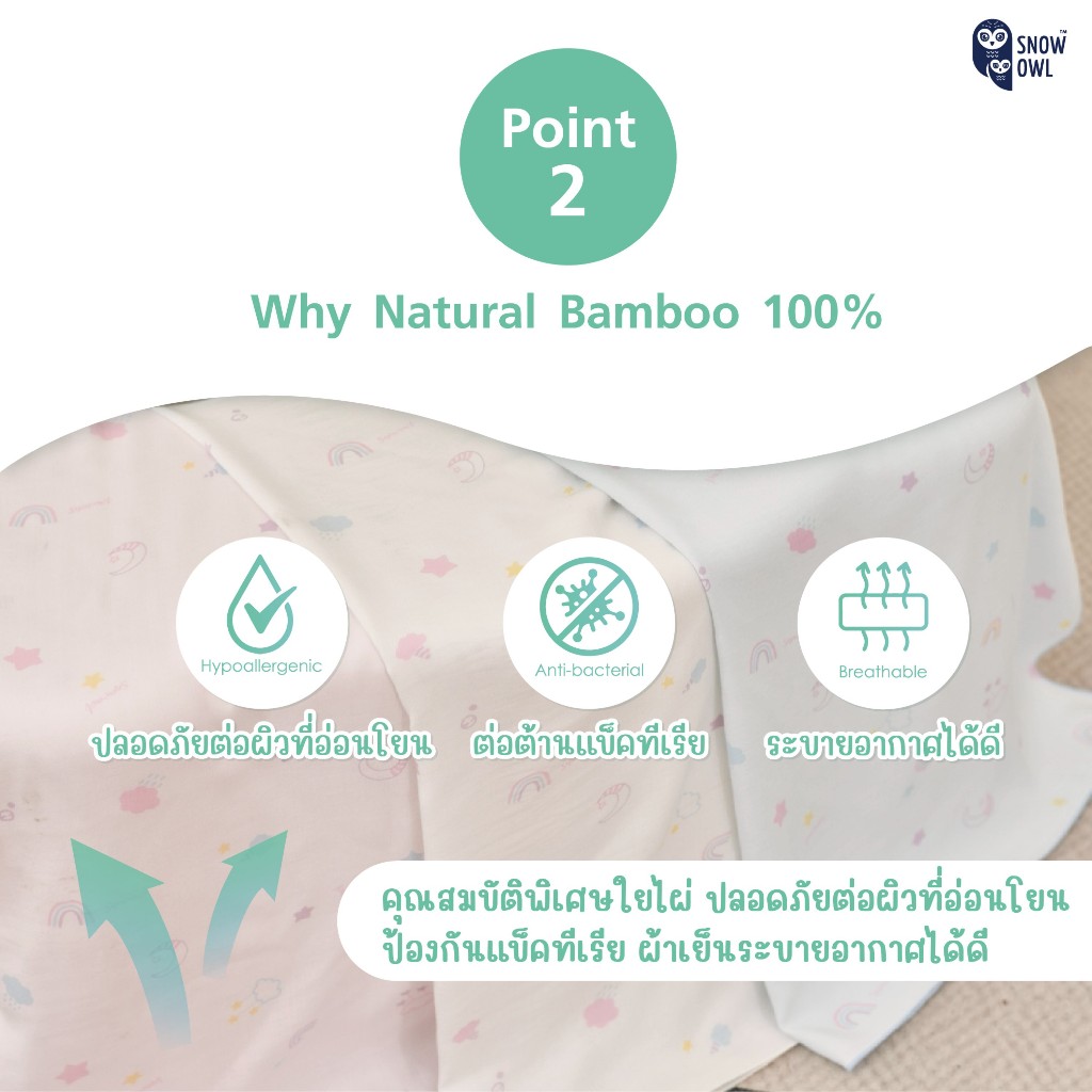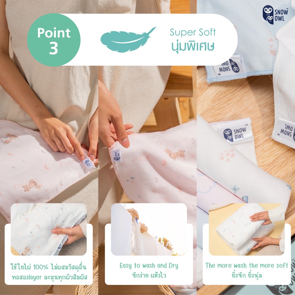 SNOW OWL BAMBOO MUSLIN ผ้าห่อตัวใยไผ่ระดับพรีเมี่ยม 100 % ขนาด 40x40 นิ้ว