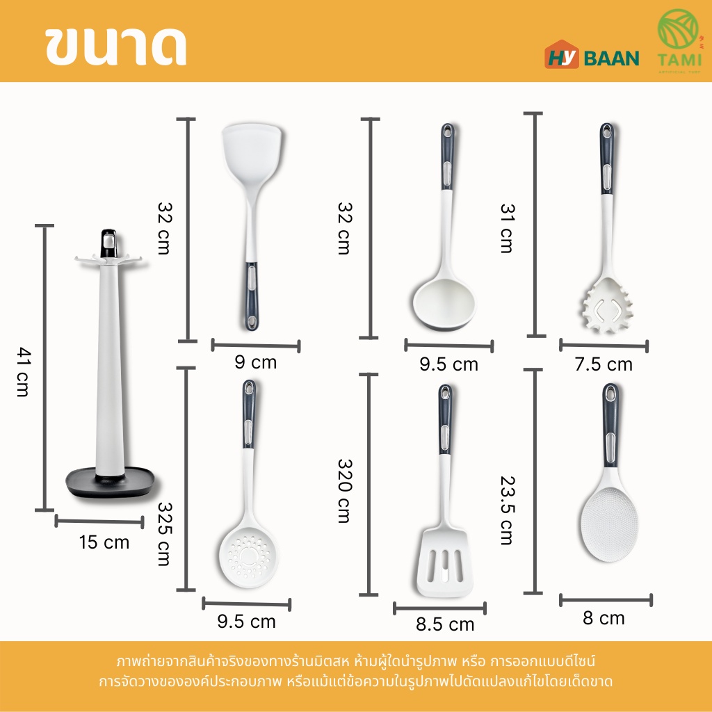 เครื่องครัวซิลิโคน 8 ชิ้น สีขาว ขายแยกชิ้น silicone kitchen utensils 8pcs ชุด เครื่องครัว ซิลิโคน ทนความร้อน ทามิ Hybaan