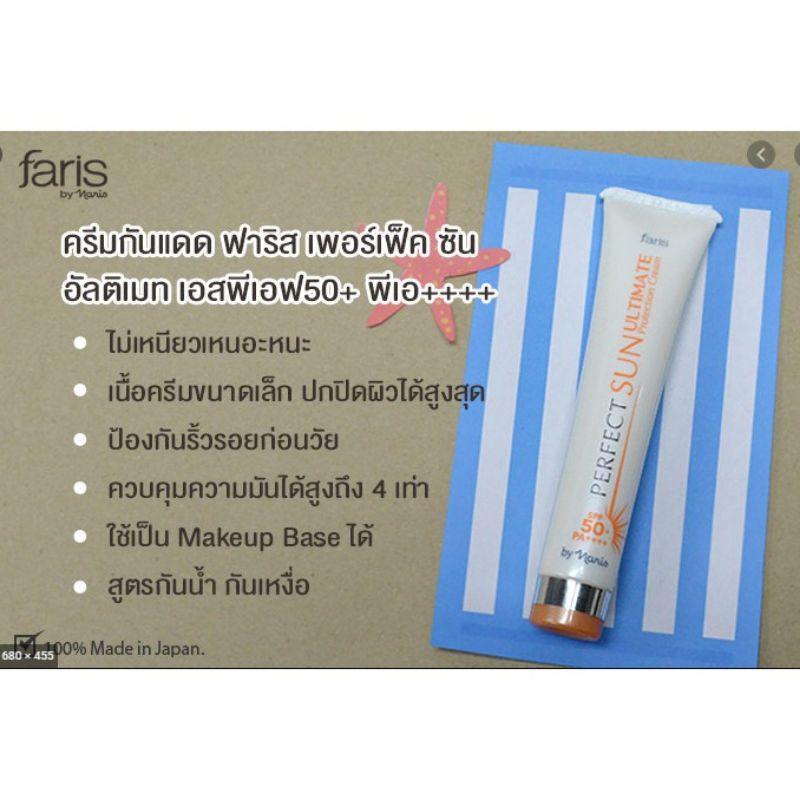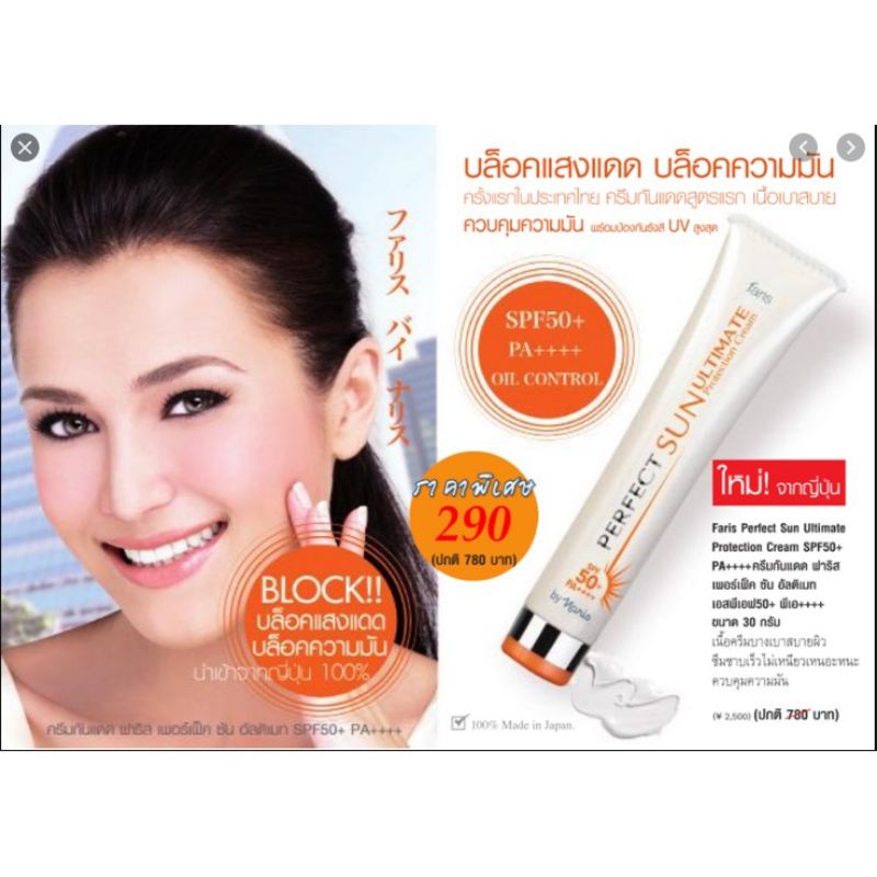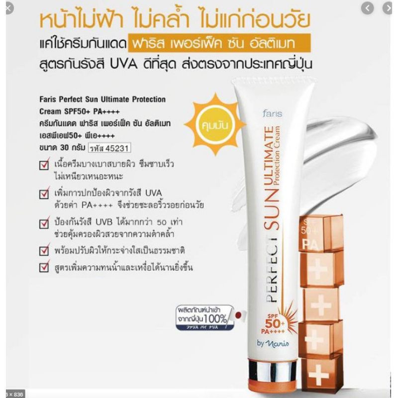 Faris perfect Sun ultimate protection cream ครีมกันแดดคุมมัน ฟาริส เพอร์เฟค ซัน อัลติเมท เอสพีเอฟ50+