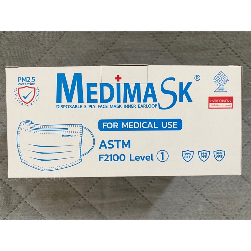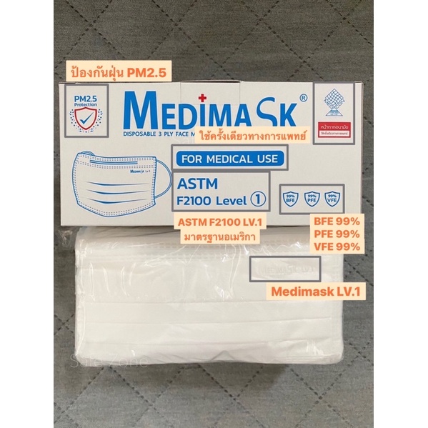 ‼️พร้อมส่ง‼️ Medimask หน้ากากอนามัย 3 ชั้น🔺สีขาว ทางการแพทย์ ASTM Level 1🔺 ป้องกันฝุ่นพิษ PM2.5 ผลิตโรงงานไทย ลอตล่าสุด