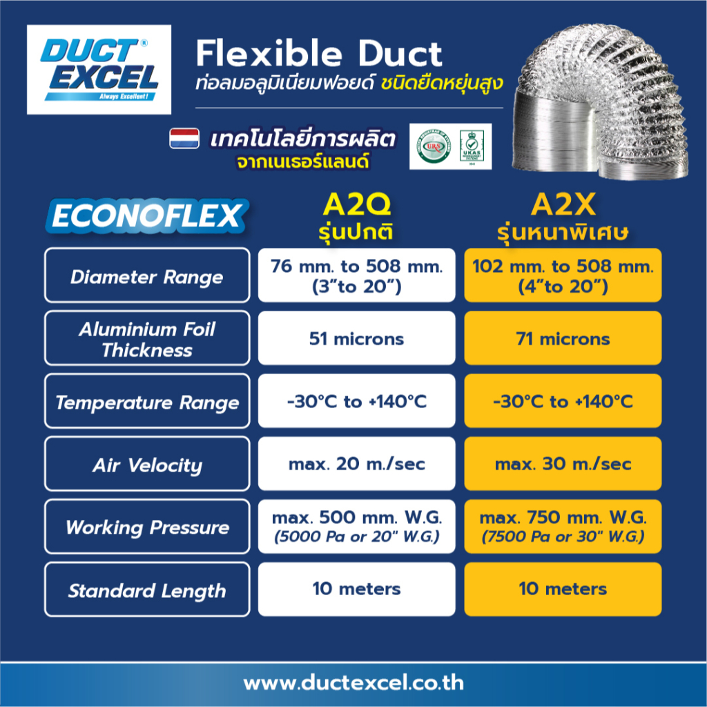 Duct Excel ท่อลมอลูมิเนียมฟอยล์ ชนิดยืดหยุ่นสูง ขนาด 3, 4, 5, 6 นิ้ว