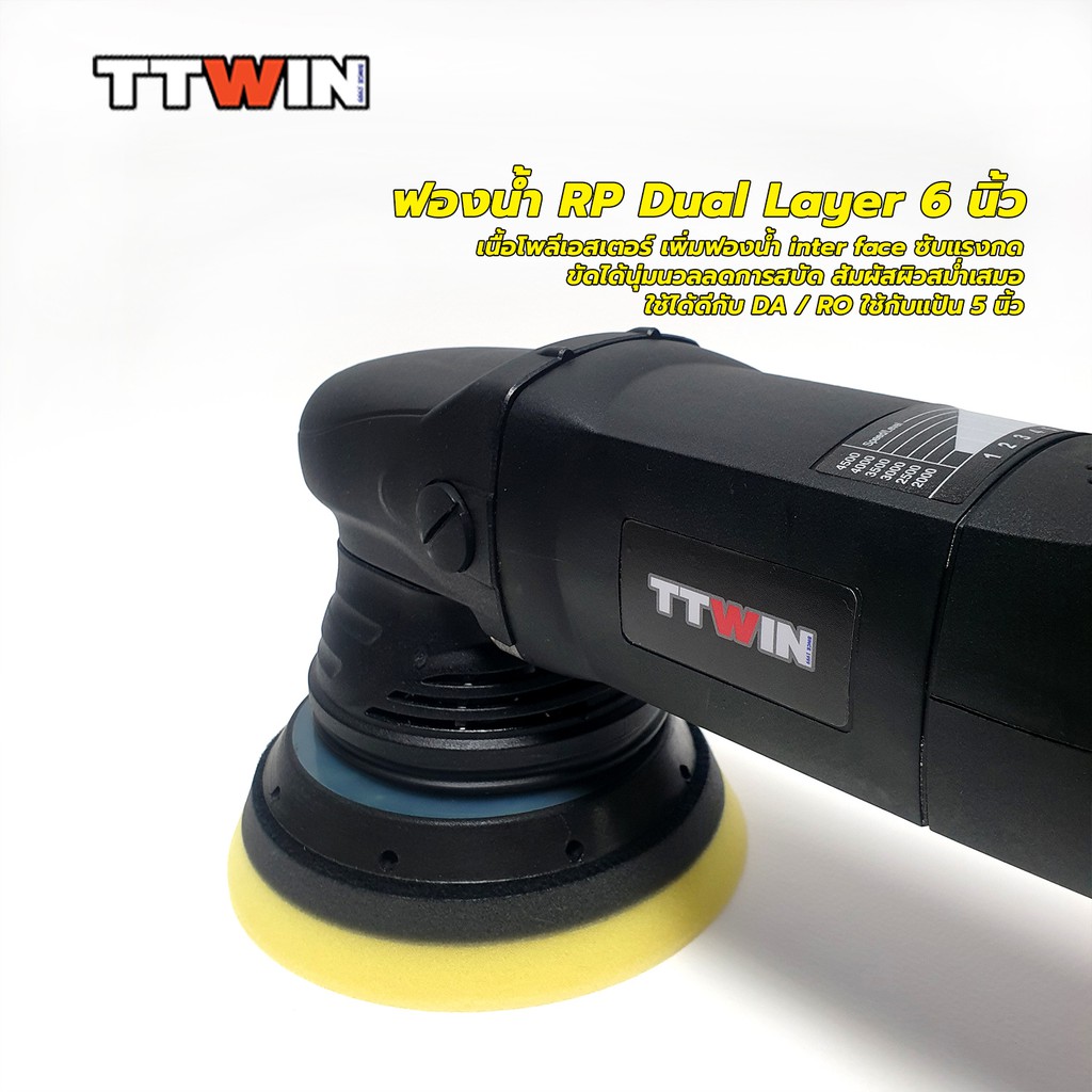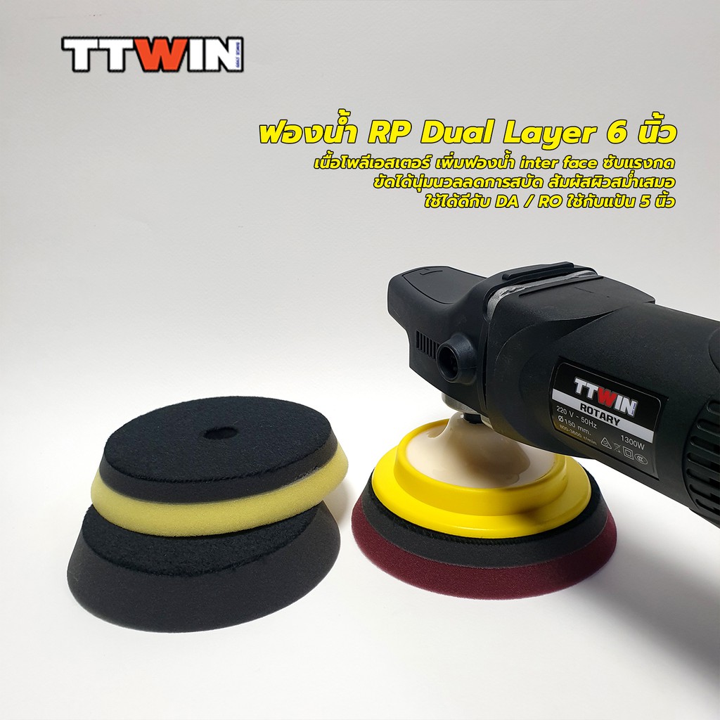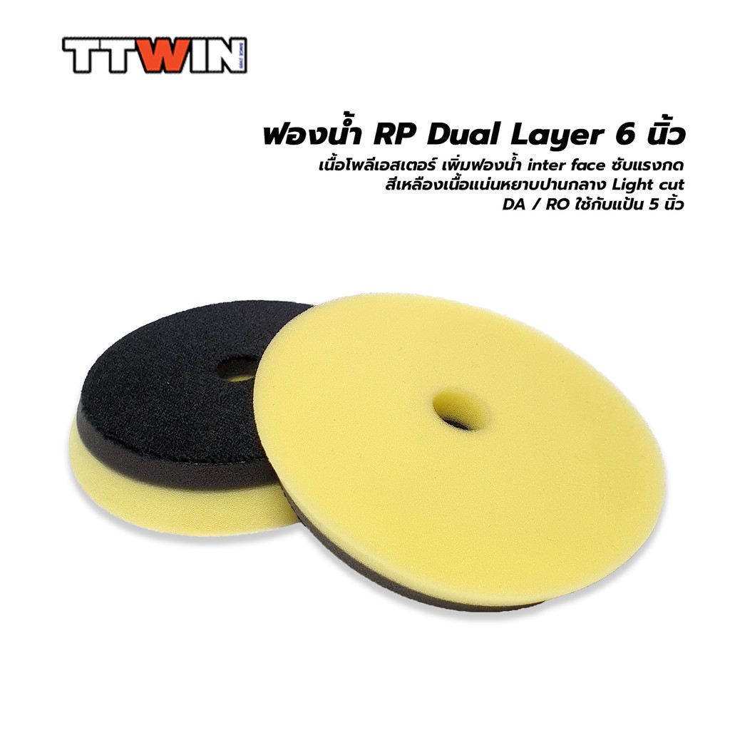 ฟองน้ำขัดสีรถ Dual Layer RP Style 6" ใช้กับแป้นขัดขนาด 5 นิ้ว เนื้อฟองน้ำโพลีเอสเตอร์ เหนียวไม่ฉีกขาดง่าย