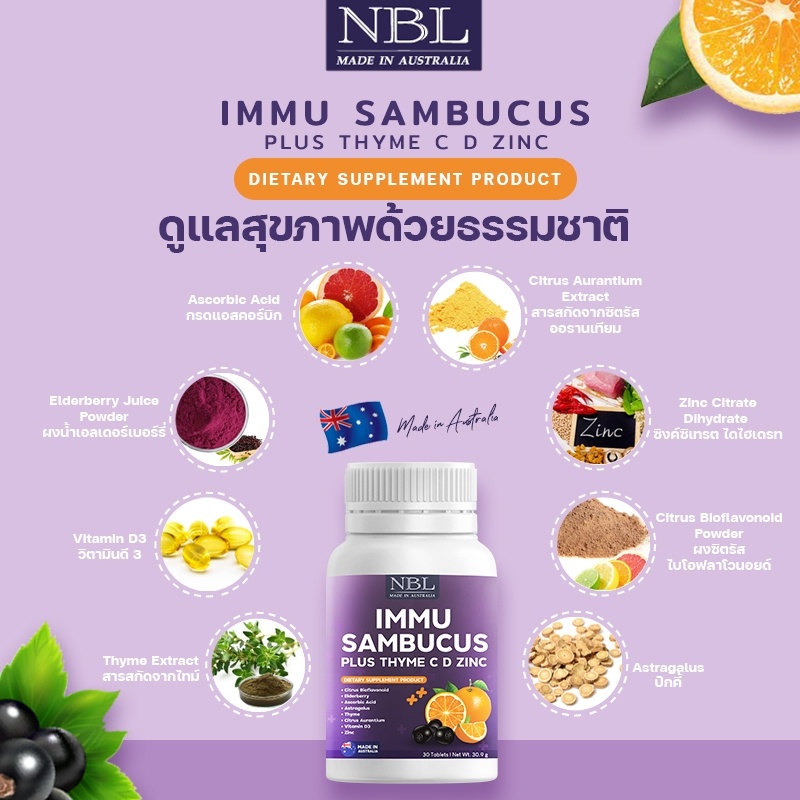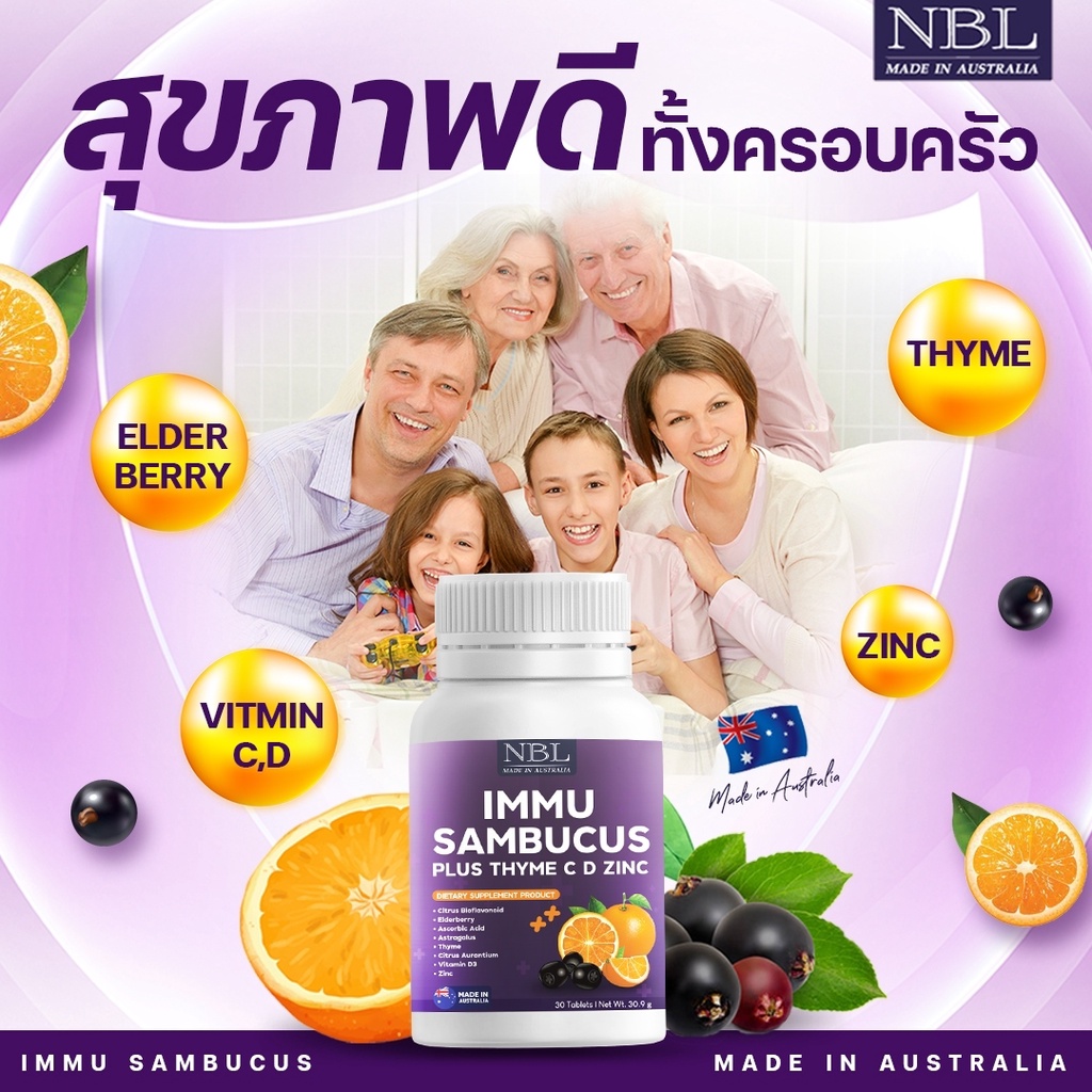 NBL IMMU Sambucus Plus Thyme C D Zinc - อิมมู แซมบูคัส พลัส ไทม์ ซี ดี ซิงค์ (30 เม็ด)
