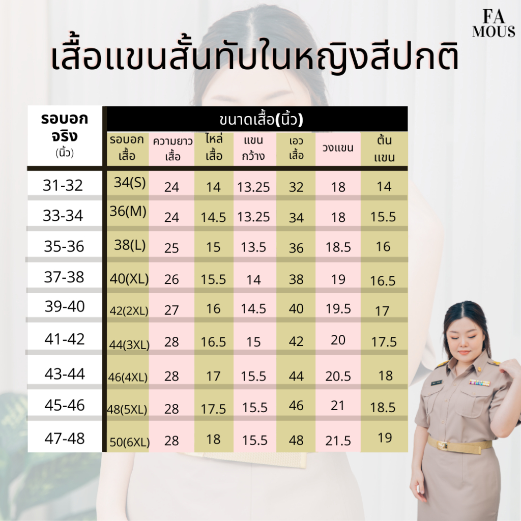 (ขายแยกชิ้น) ชุดข้าราชการแขนสั้นทับในหญิง เสื้อสีกากีแขนสั้นทับในหญิง เสื้อลูกเสือหญิง