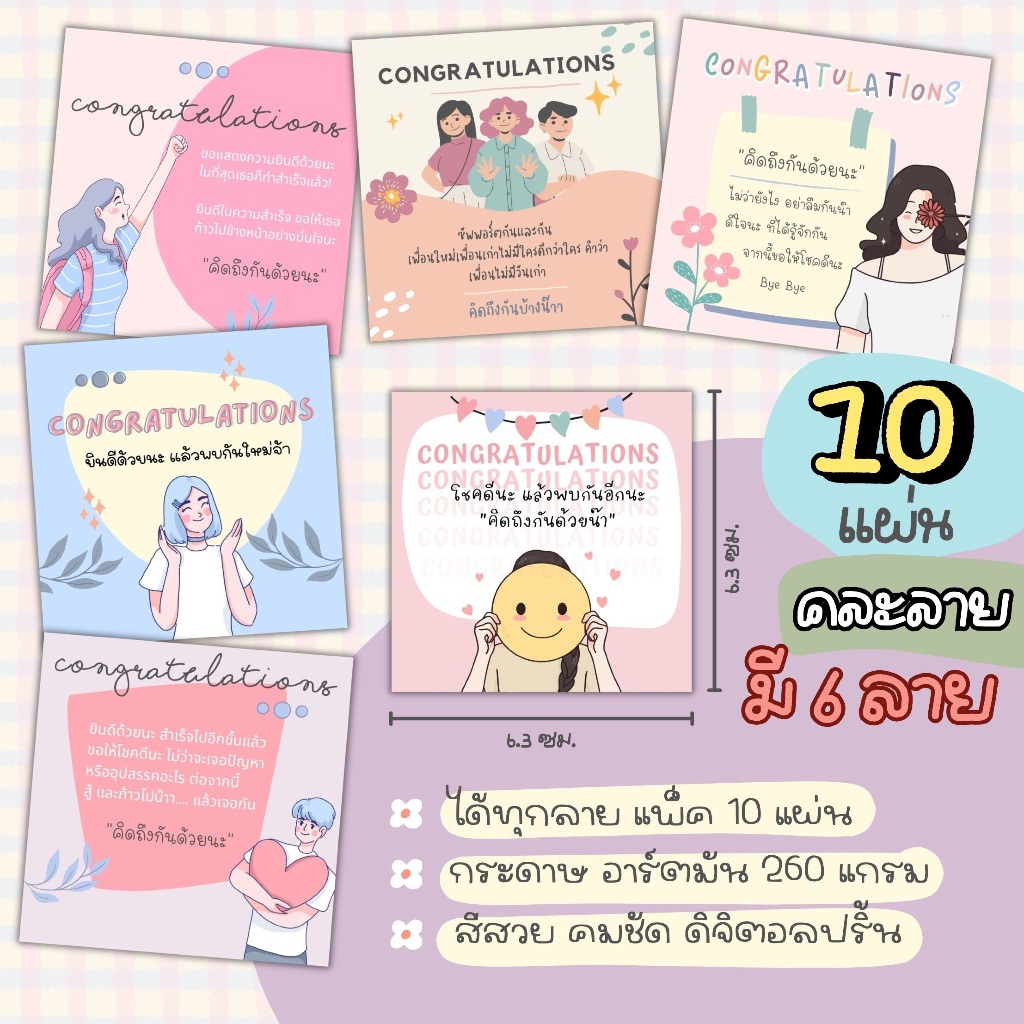 congratulations card การ์ดปัจฉิม จำนวนและขนาด แจ้งในภาพตัวเลือก รหัส con 1