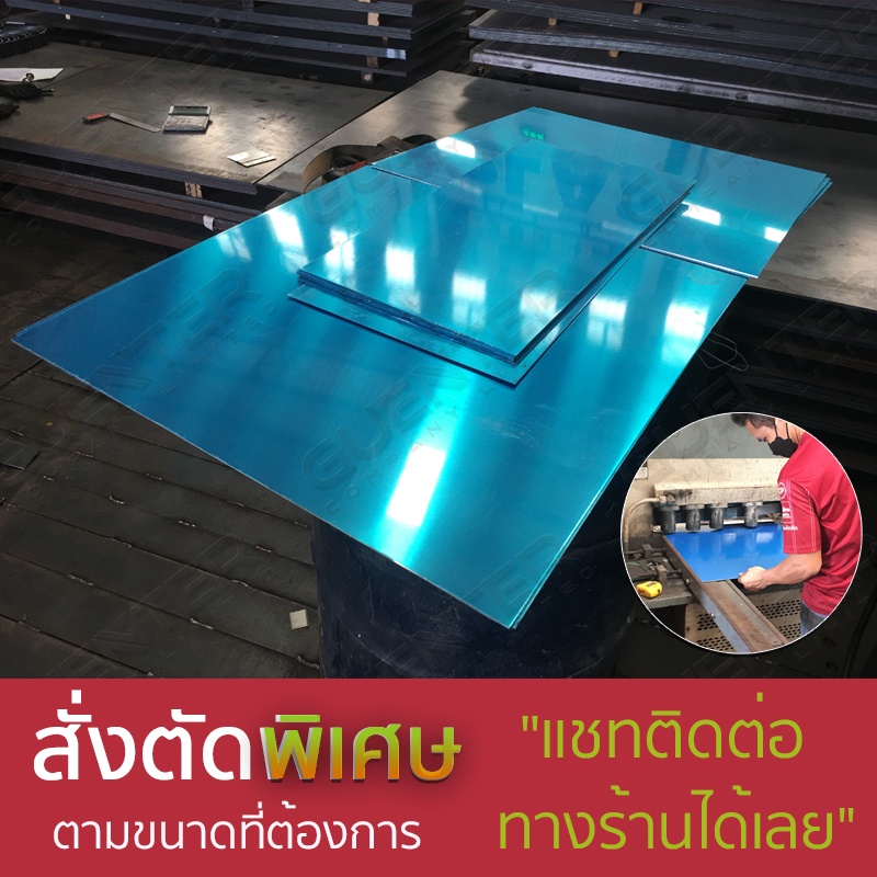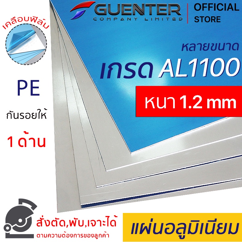 แผ่นอลูมิเนียม 1.2 mm เกรด 1100 หลายขนาด (สั่งตัด,พับ,เจาะได้) เคลือบฟิล์ม PE กันรอย 1 ด้าน [PLA12]