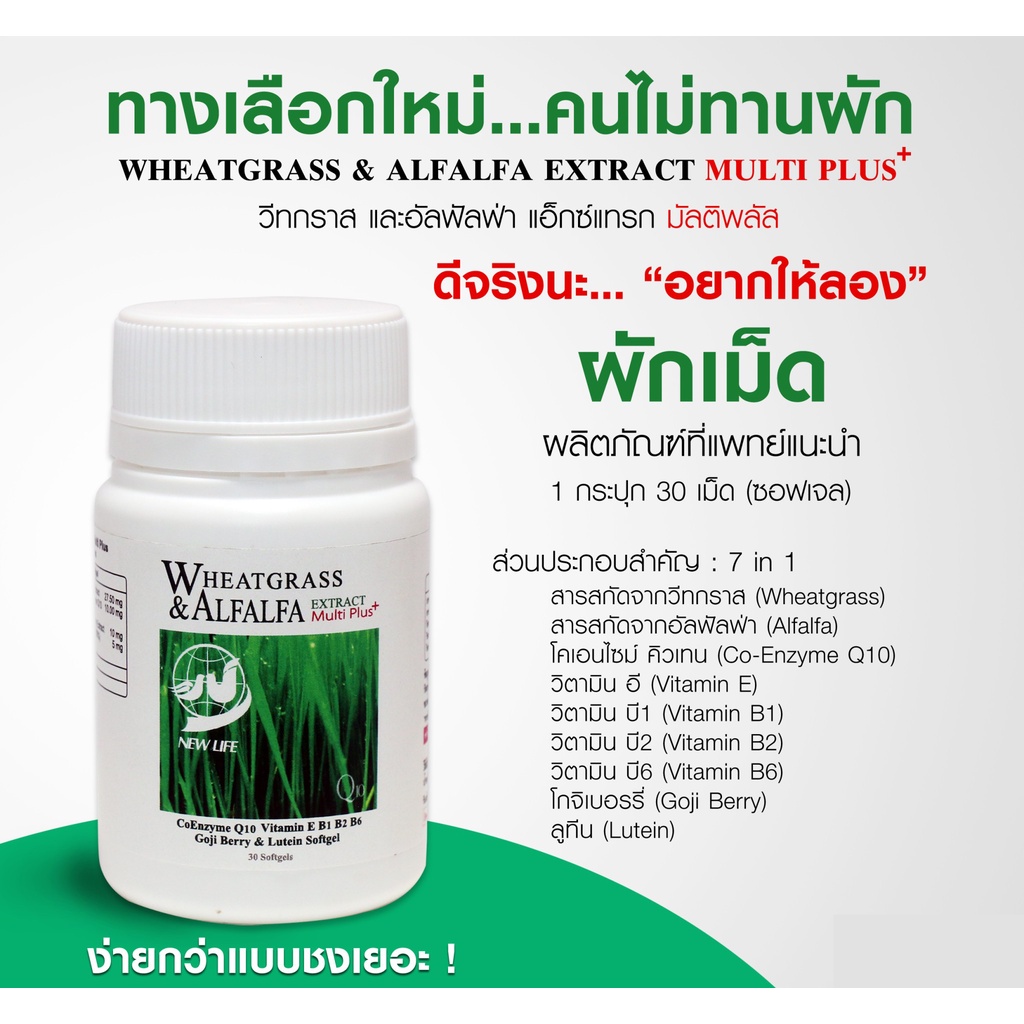 ผักเม็ดนิวไลฟ์ ของแท้ต้นฉบับ เสริมภูมิ บำรุงสมองดูแลดวงตา นิวไลฟ์ วีทกราสและอัลฟัลฟา มัลติ พลัส