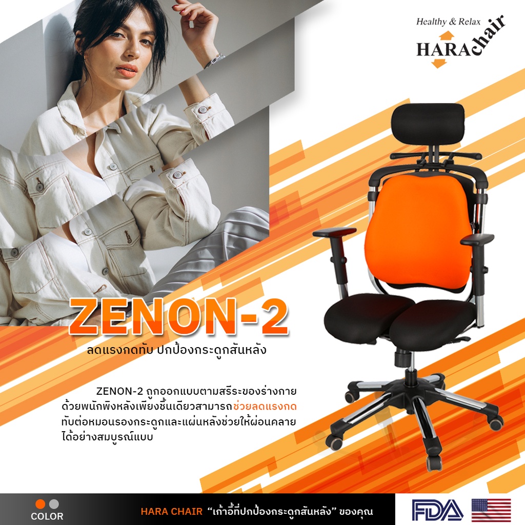 [ส่งฟรี] HARA CHAIR เก้าอี้สำนักงานเพื่อสุขภาพ รุ่น ZENON 2 63x50x116-133 cm.