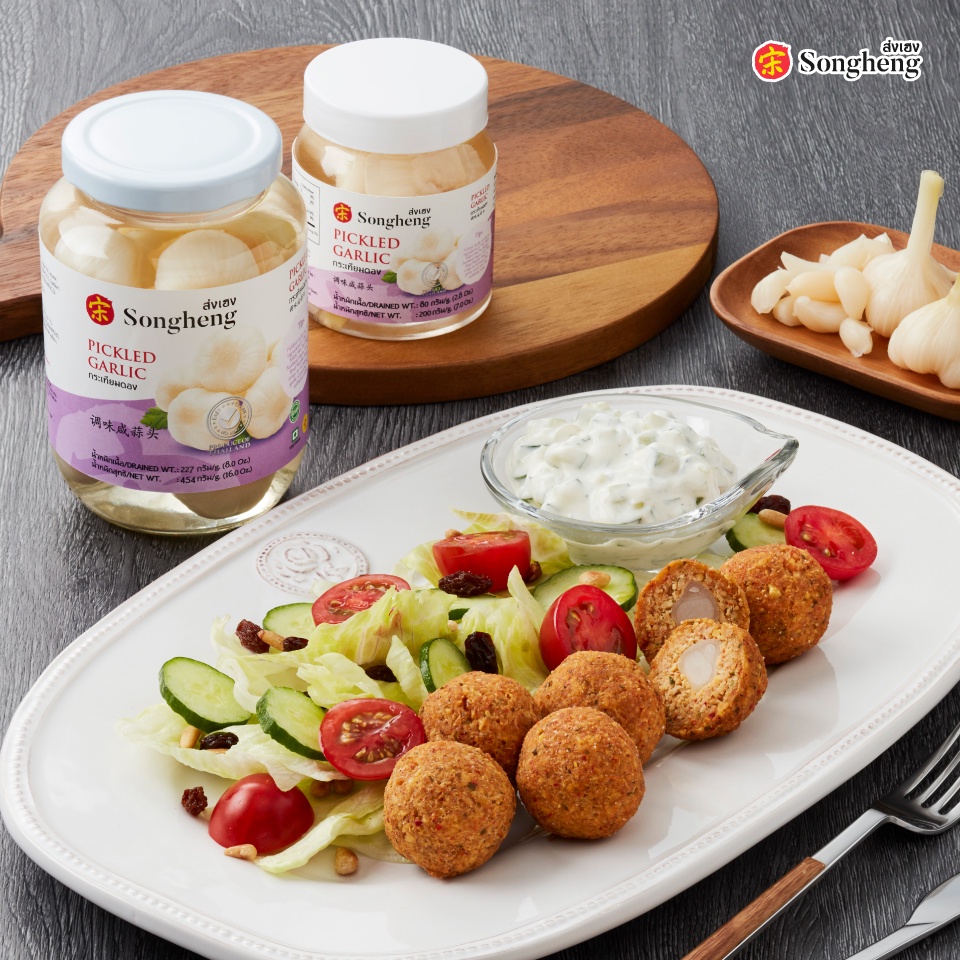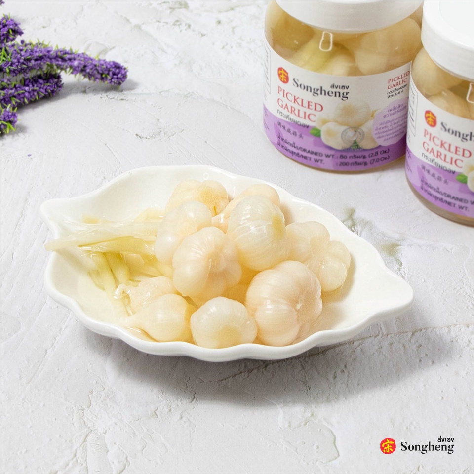กระเทียมดอง เกรดพรีเมียมส่งออก (1ขวดx454กรัม) ส่งเฮง ทำน้ำยำ น้ำจิ้มสุกี้ น้ำจิ้มซีฟู้ด Songheng
