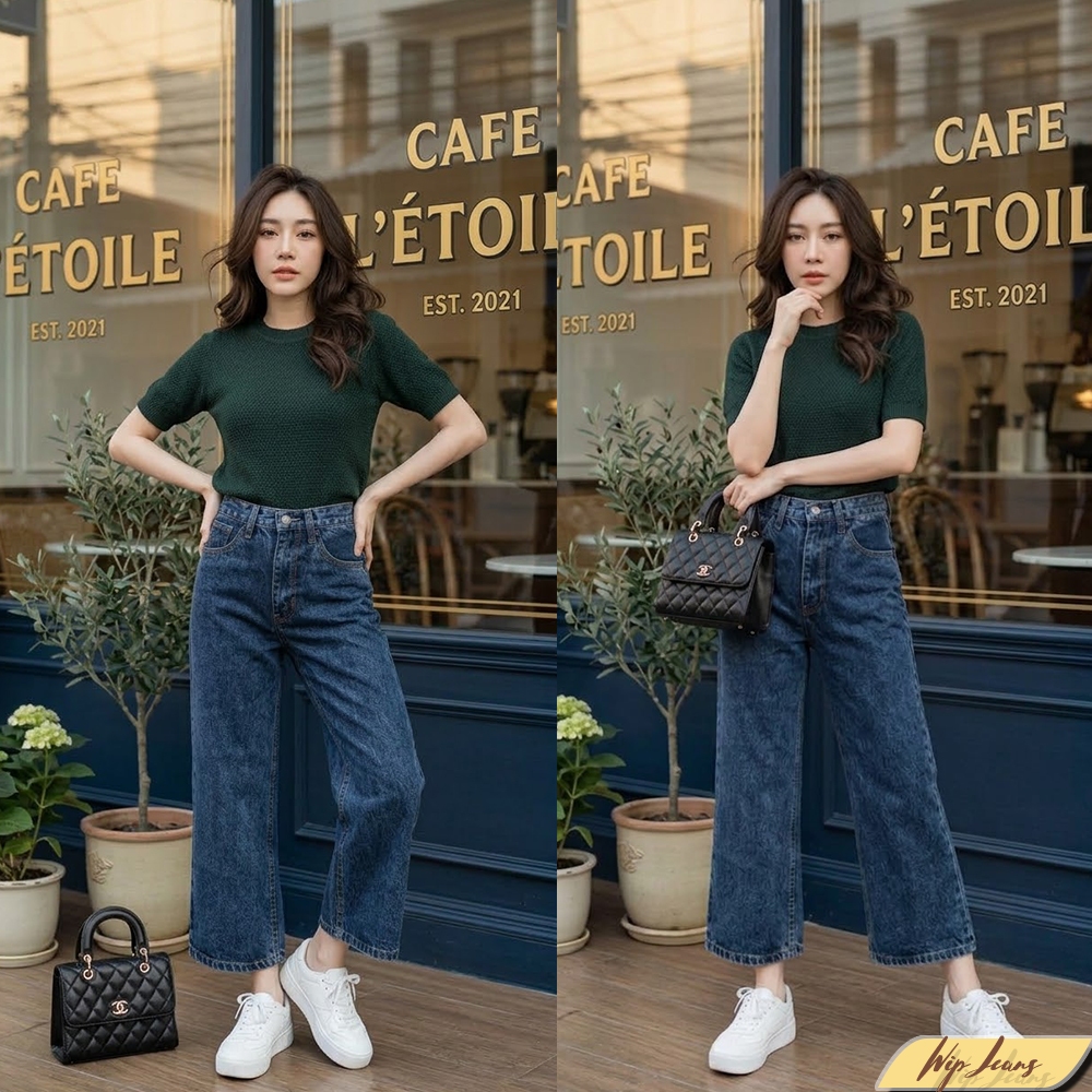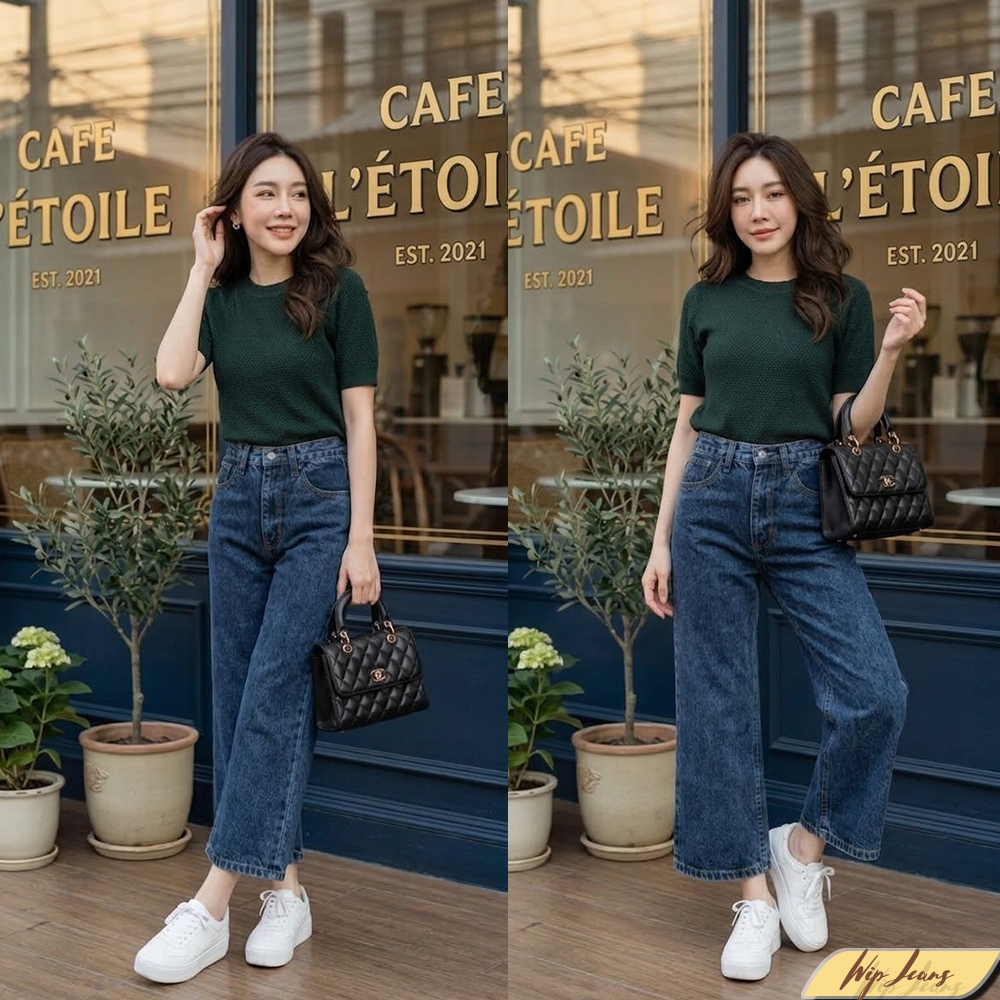 กางเกงยีนส์ขากระบอกทรง7ส่วนเอวสูงมีไซส์ใหญ่ S ถึง 5XL ขาเต่อใส่สบาย พรางหุ่นเป๊ะ แมตช์ง่ายได้ทุกลุค B004