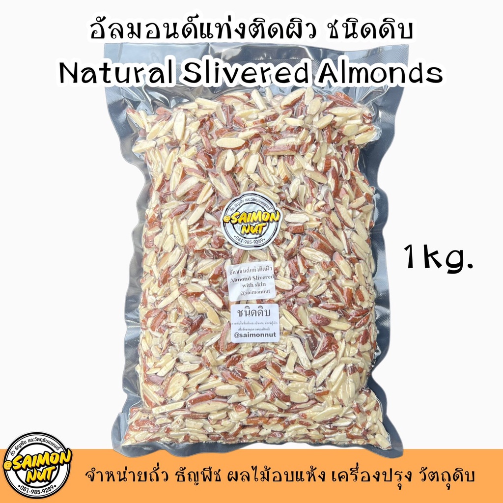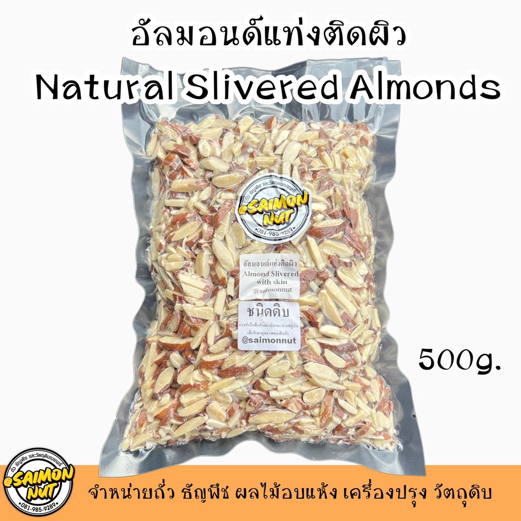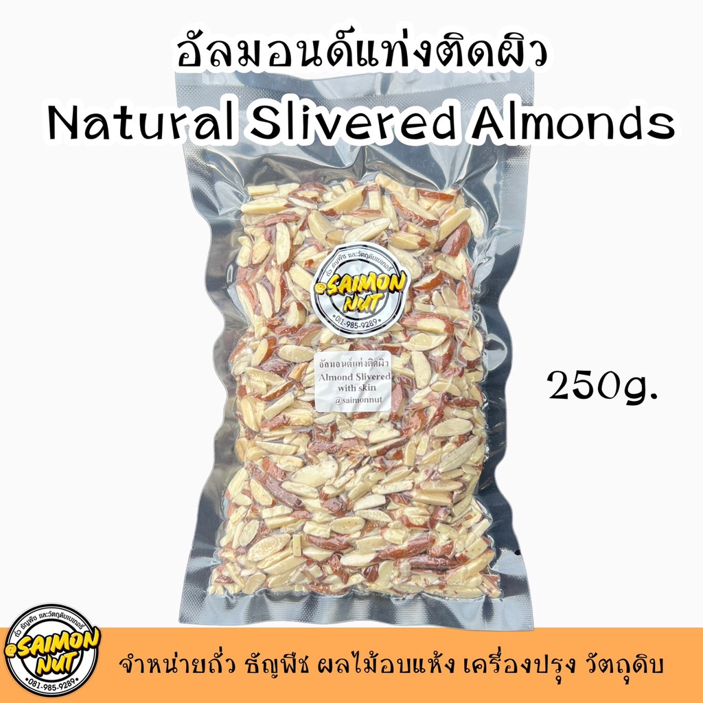 อัลมอนด์แท่งติดผิว อัลมอนด์สติ๊ก Almond Slivered With Skin 3 ขนาด 250/500/1000g.
