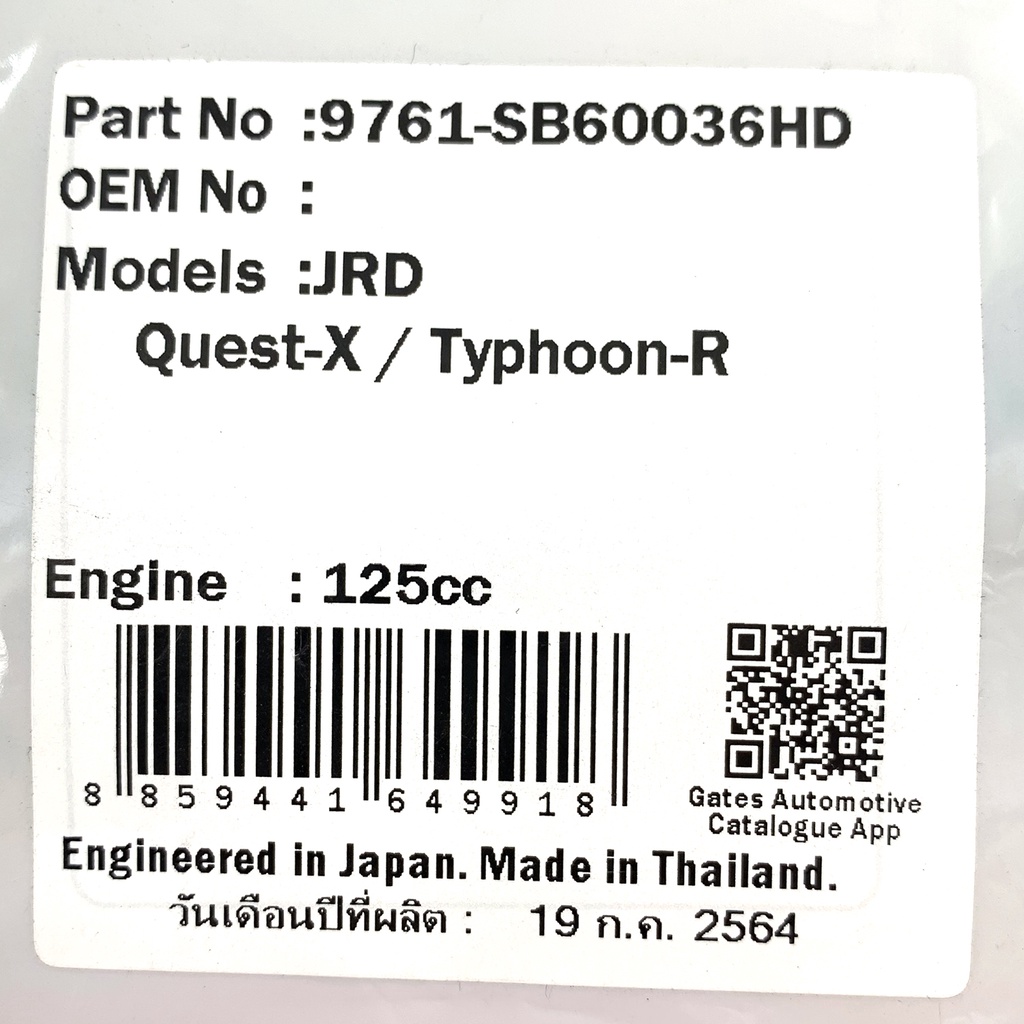 สายพานขับเคลื่อน Gates เกทส์ Power Link SB60036HD Quest - X / Typhoon-R ใช้แทนสายพานเดิมรถ JRD Quest - X / Typhoon-R