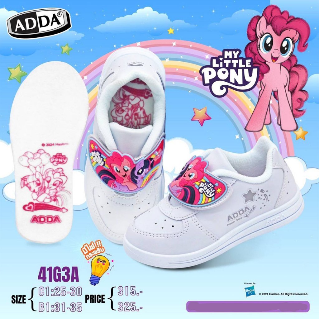 รองเท้านักเรียน โพนี่ มีไฟ!! สีดำ(41C23) สีขาว(41G3A) Adda Pony รองเท้าอนุบาล รองเท้าพละ