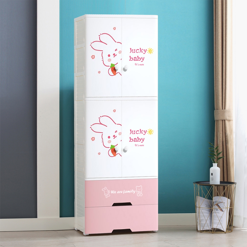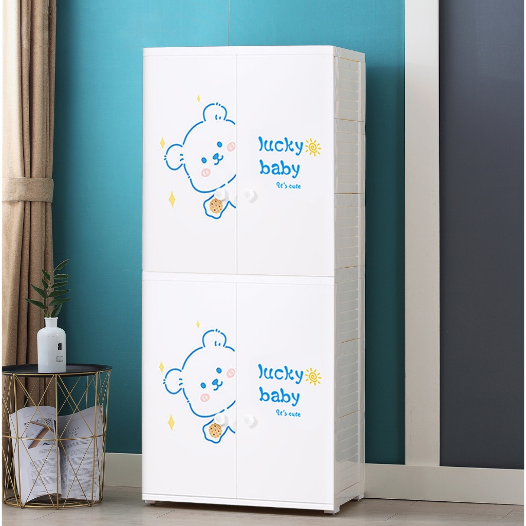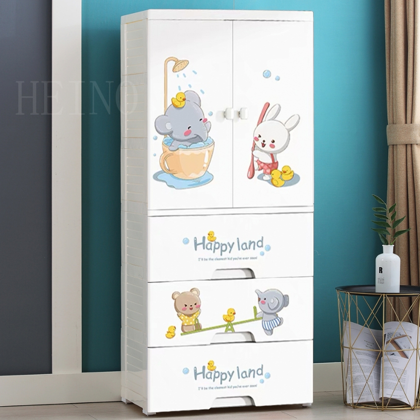 HEINOตู้เสื้อผ้าลายการ์ตูนเด็กที่เก็บของประตูคู่พร้องลิ้นชัก พร้อมล้อเลื่อน เป็นมิตรกับสิ่งแวดล้อม ไม่มีกลิ่น ปลอดสารพิษ