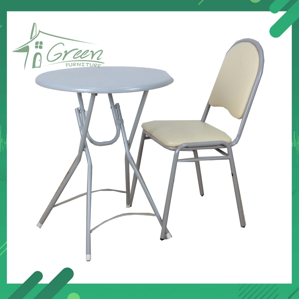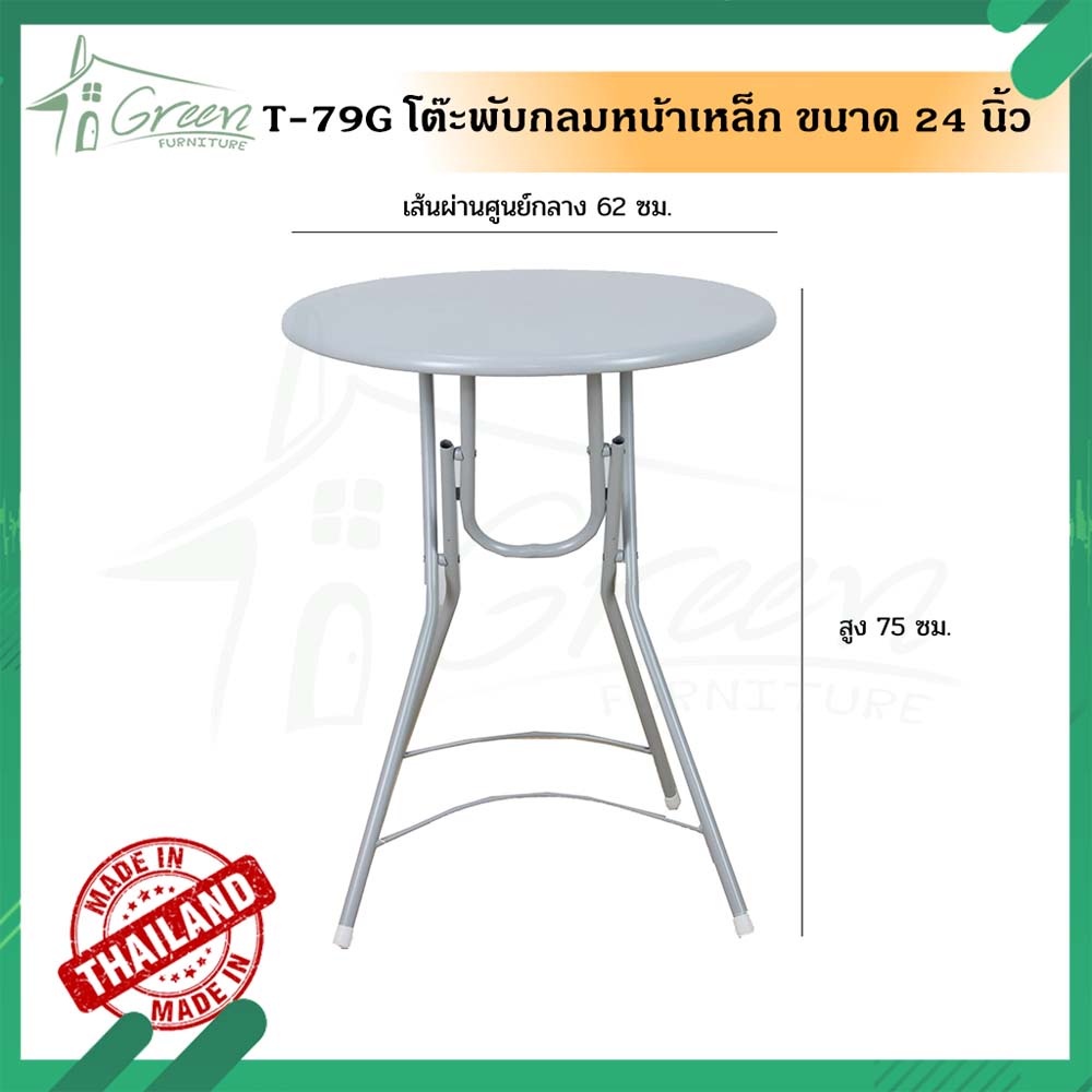 T79G โต๊ะพับกลมหน้าเหล็ก 24 นิ้ว โต๊ะกาแฟ ทานอาหาร แคมป์ปิ้ง เคลื่อนย้ายสะดวก เหล็กเคลือบสีกันสนิม
