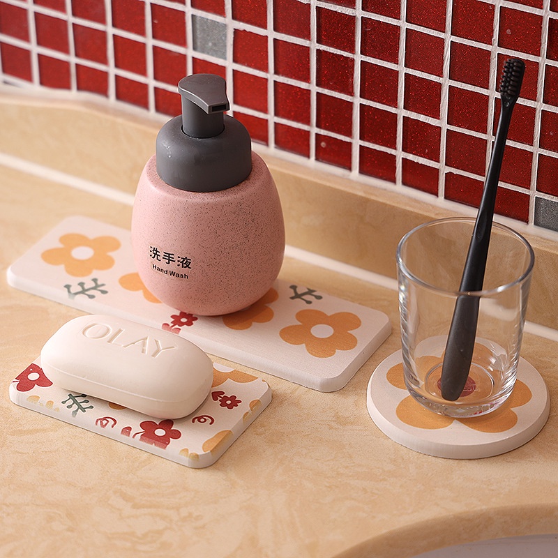 แผ่นหินรองแก้ว ที่รองแก้ว แห้งไว กันลื่น ลายการ์ตูนน่ารัก