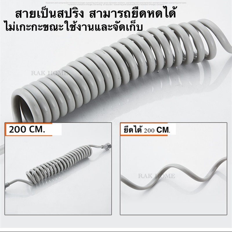 RAK HOME สายฉีดชำระ สายฉีดก้นสแตนเลสแท้304 แบบสปริงยีดยาวได้ 2 เมตร สายไม่เกะกะพื้น