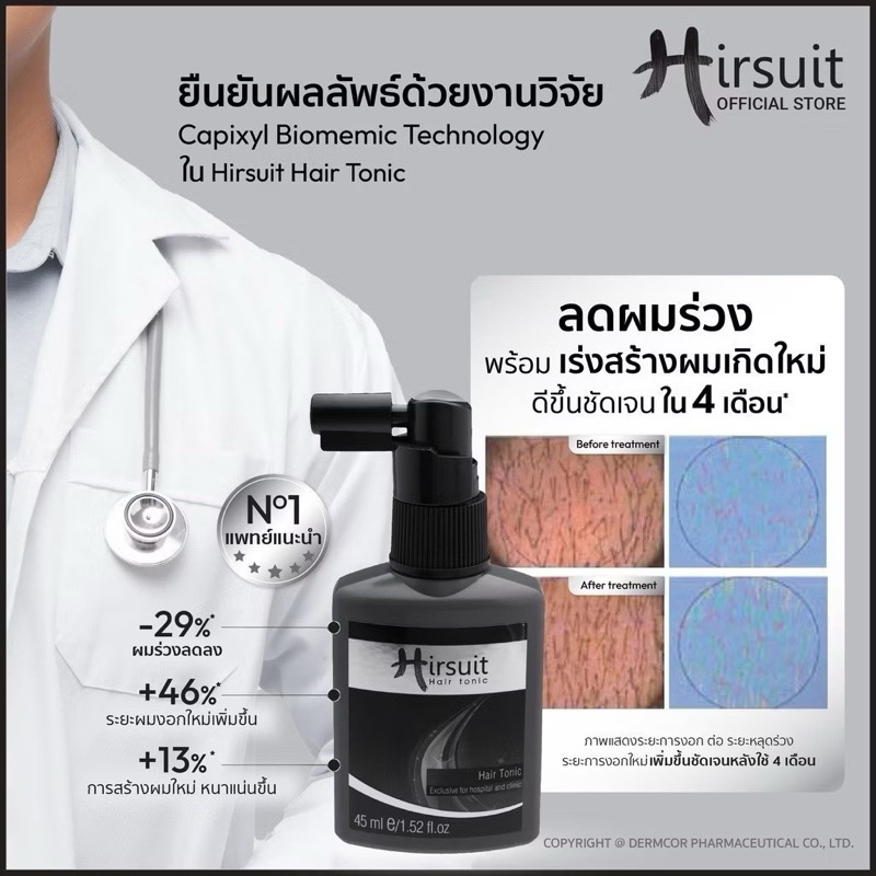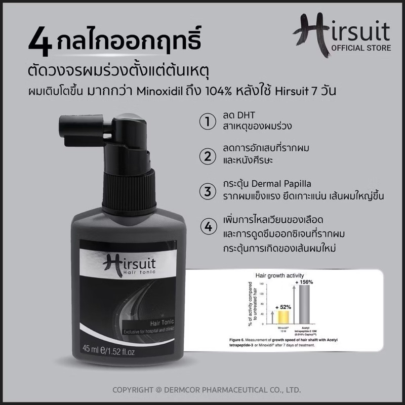HIRSUIT Hair Tonic เฮอร์ซูท แฮร์ โทนิค สเปรย์ลดผมร่วง ปลูกผม บำรุงเส้นผมและหนังศีรษะ กระตุ้นการงอกผม