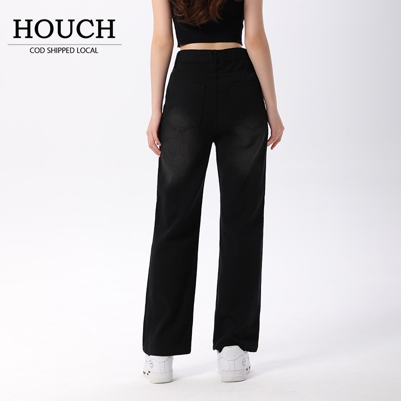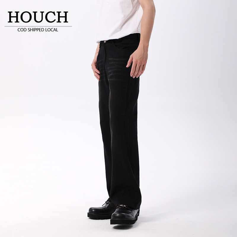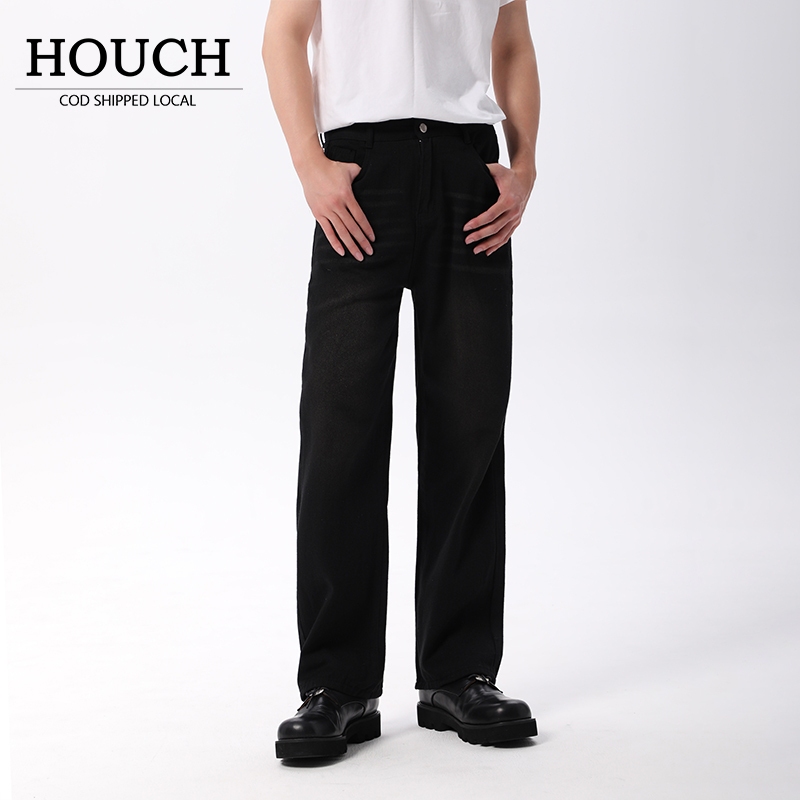 Houch พร้อมส่ง COD กางเกงยีนส์ผู้ชาย เอวยางยืด เท่ๆสไตล์เกาหลีทรงช่าง ทรงลุง ทรงกระบอก