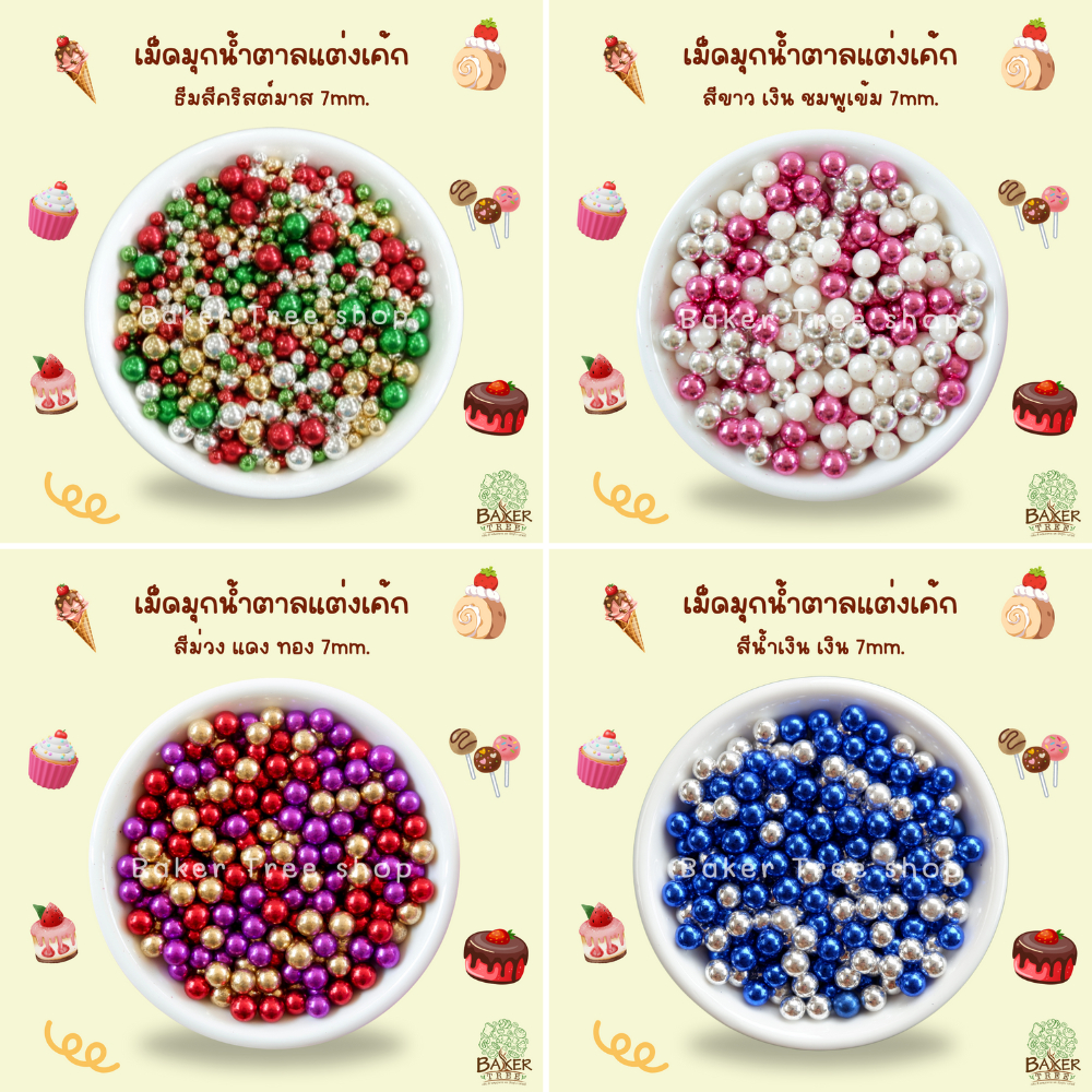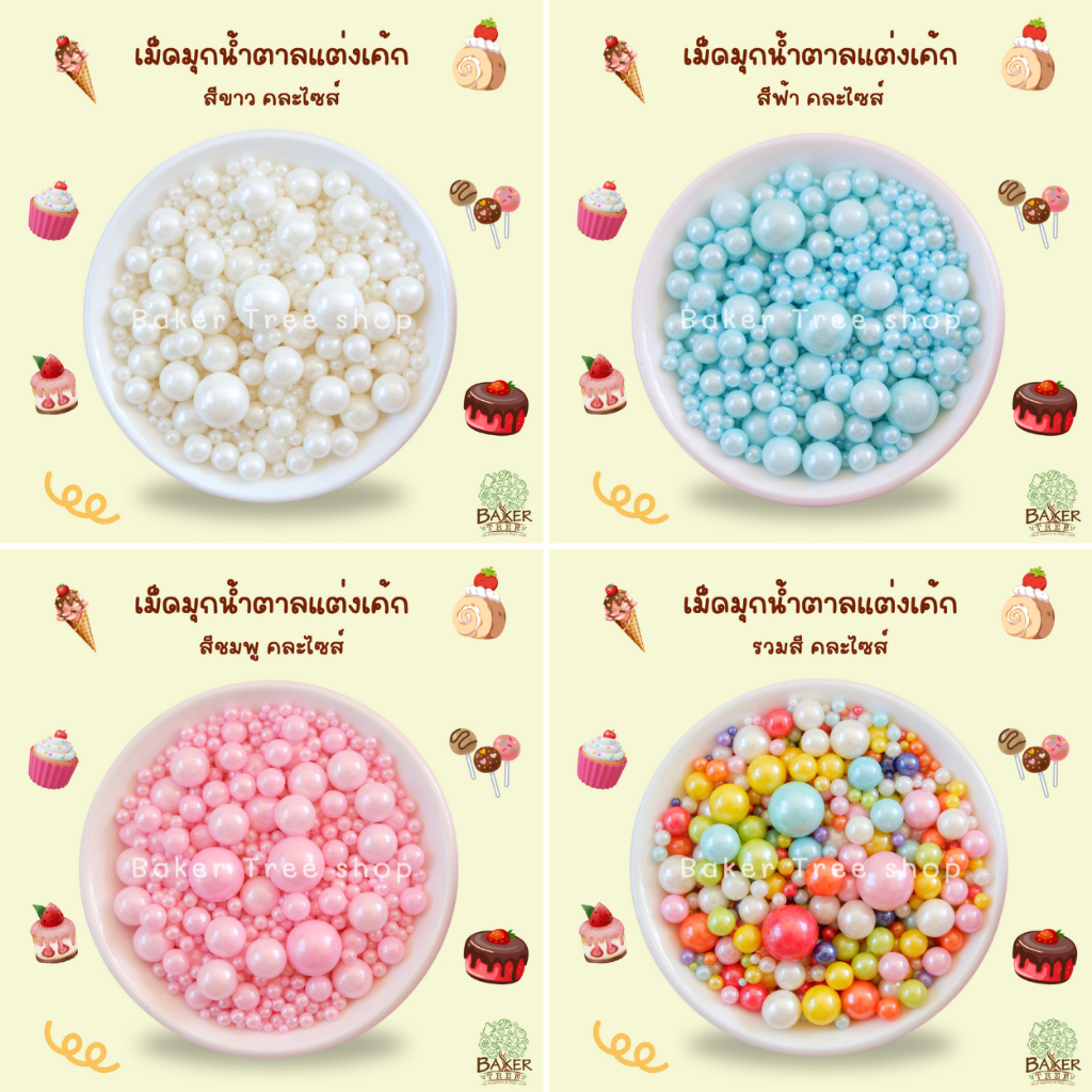 Baker Tree เม็ดมุกแต่งเค้ก คัพเค้ก เบเกอรี่ 25g/50g/100g สีสวย ราคาถูก Sugar Sprinkles