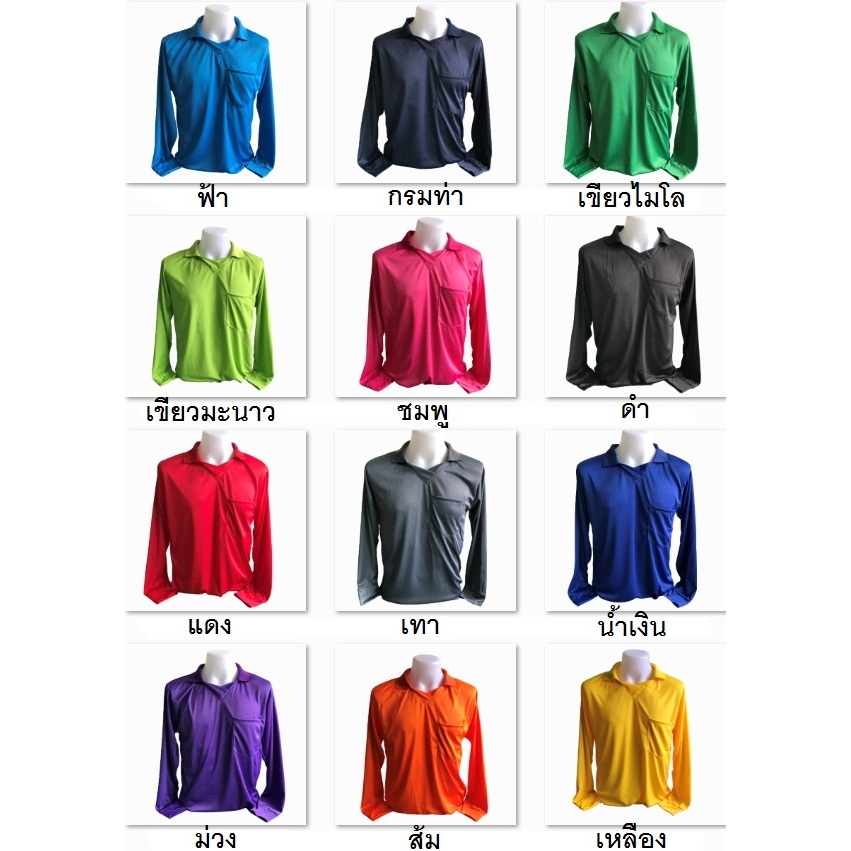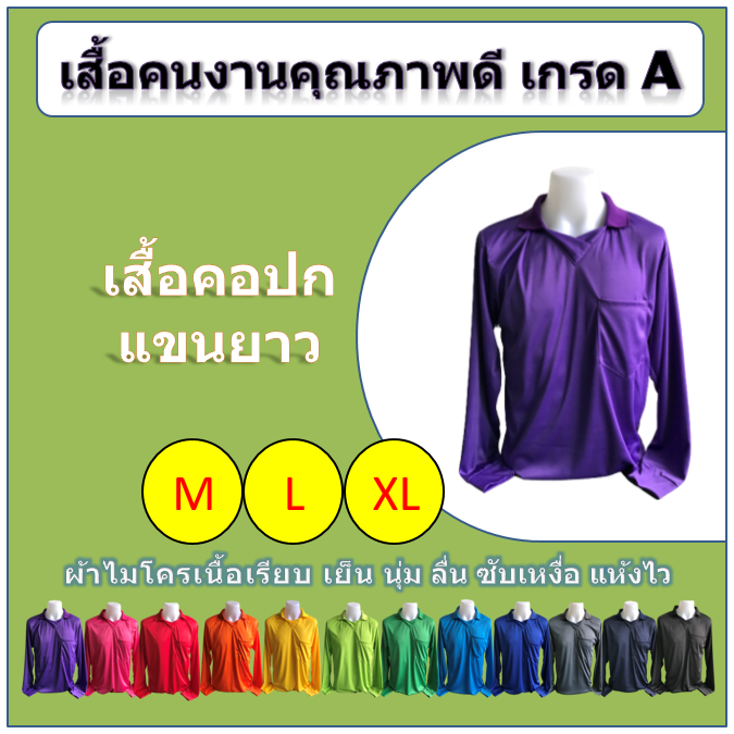 เสื้อคนงาน คอปก แขนยาว สีล้วน (M/L/XL)