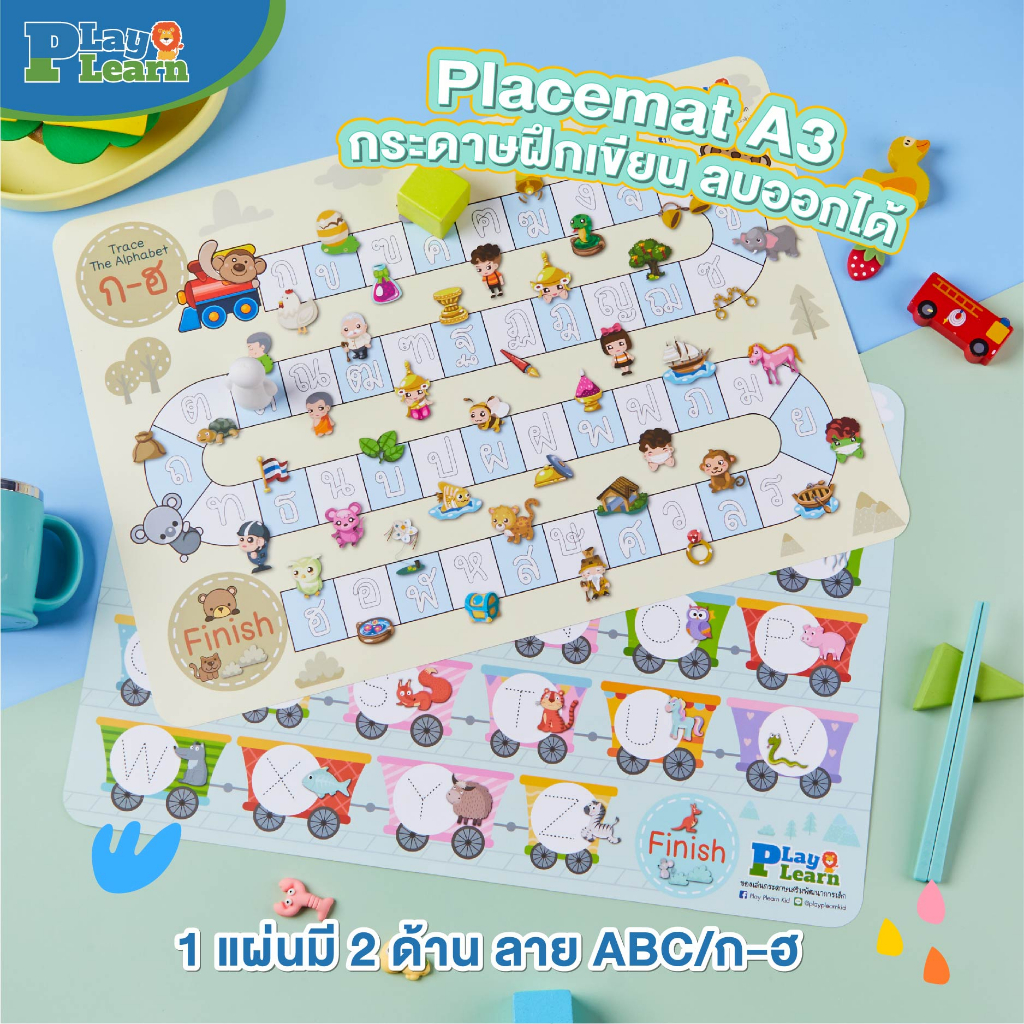 แผ่นรองจาน A-Z, ก-ฮ กระดาษฝึกเขียนลบออกได้ Placemat A3 Play Plearn Kid เหมาะสำหรับเด็ก 1 ขวบขึ้นไป