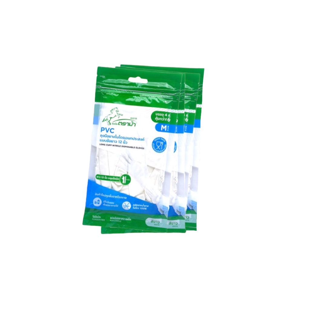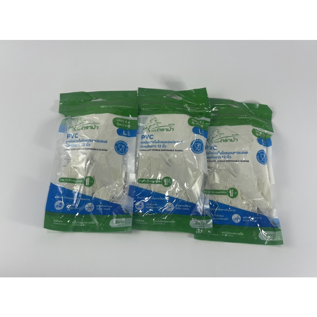 ถุงมือยางตราม้า Master Glove PVCไนไตร 100% ยาวพิเศษ สีขาว ทนน้ำมัน กันเคมี 19 บาท!