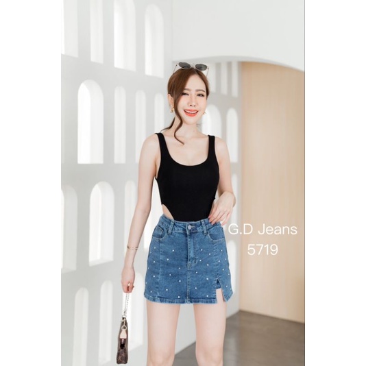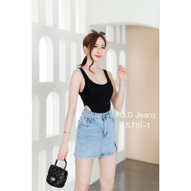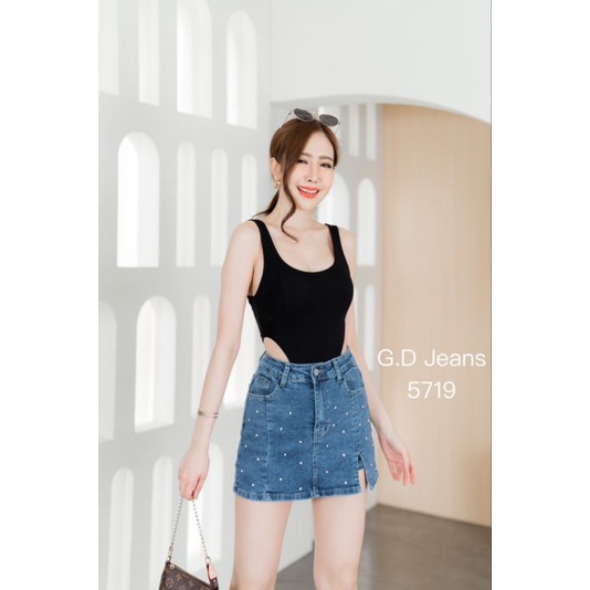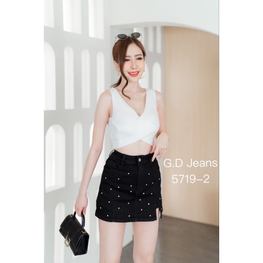 🌈👉#5719#GD💥ผ้ายืด💥 กางเกงกระโปรงผ้ายืด💥ทรงสั้นติดเพชรผ่าด้านหน้าสวยผ้าดีใส่สบาย