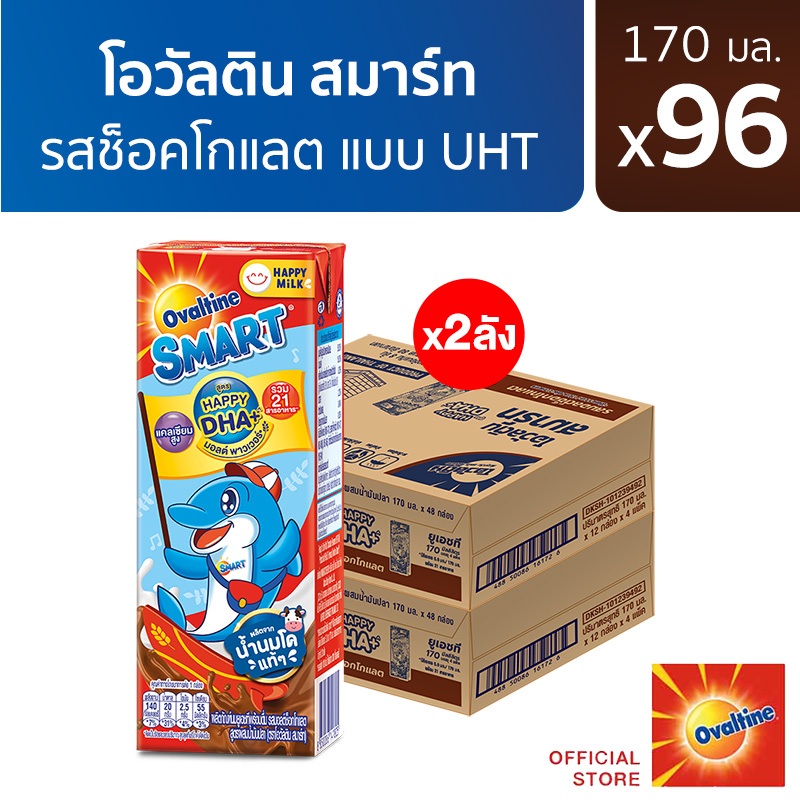 Ovaltine โอวัลติน สมาร์ท แฮปปี้ ดีเอชเอ พลัส รสมอลต์ช็อกโกแลต 170 มล. แพ็ค 4 (ยกลัง 48 กล่อง) (x2ลัง)