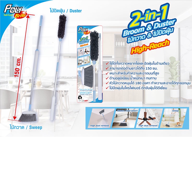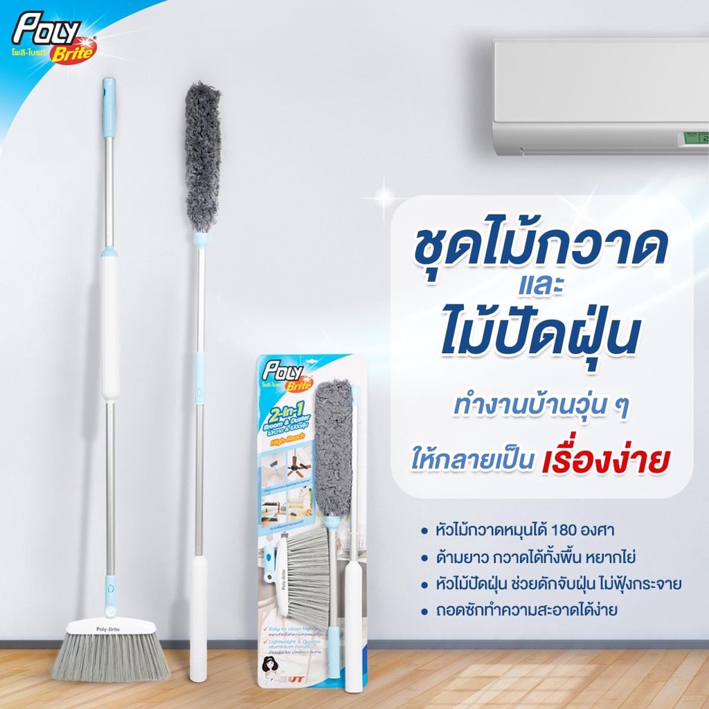 Poly-Brite โพลี-ไบรท์ ไม้กวาด/ปัดฝุ่น ชุด 2in1 ด้ามยาว 150 ซม. ทำความสะอาดที่สูง ซอกมุม ฝุ่นไม่ฟุ้ง
