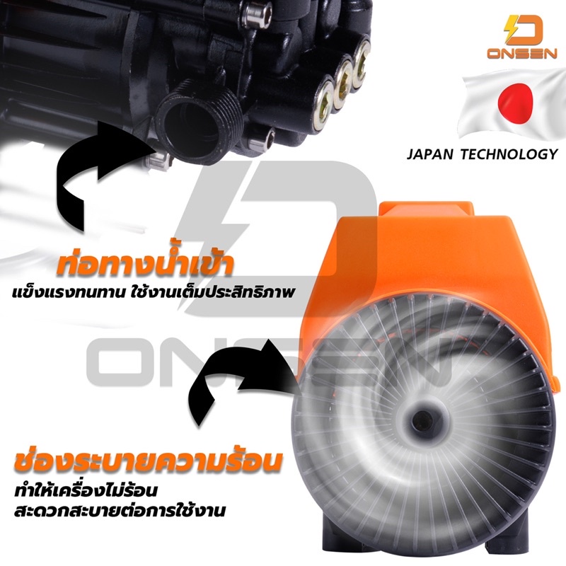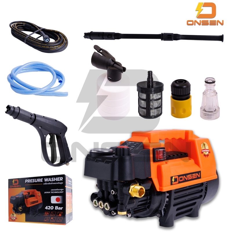 เครื่องฉีดน้ำ เครื่องฉีดน้ำแรงดันสูง ปรับความแรงบาร์ได้ 100-420 บาร์ ยี่ห้อ Onsen และ เครื่องฉีดน้ำมีล้อ 100-450 บาร์