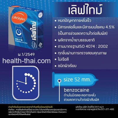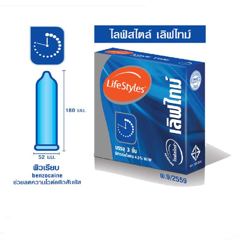 Lifestyles Love Time ถุงยางอนามัย ไลฟ์สไตล์ เลิฟไทม์ ขนาด 52 มม. บรรจุ 3 ชิ้น [12 กล่อง] JJ 4131 มีสารเบนโซเคน ถุงยาง