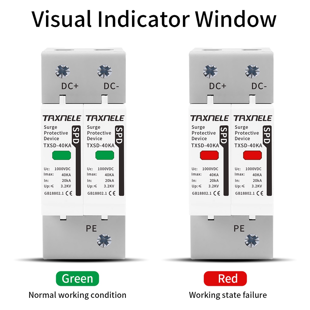 อุปกรณ์ป้องกันไฟกระชาก DC (SPD) 600V / 1000V 2 ขั้ว 20KA / 40KA สำหรับระบบโซลาร์เซลล์ ป้องกันฟ้าผ่า